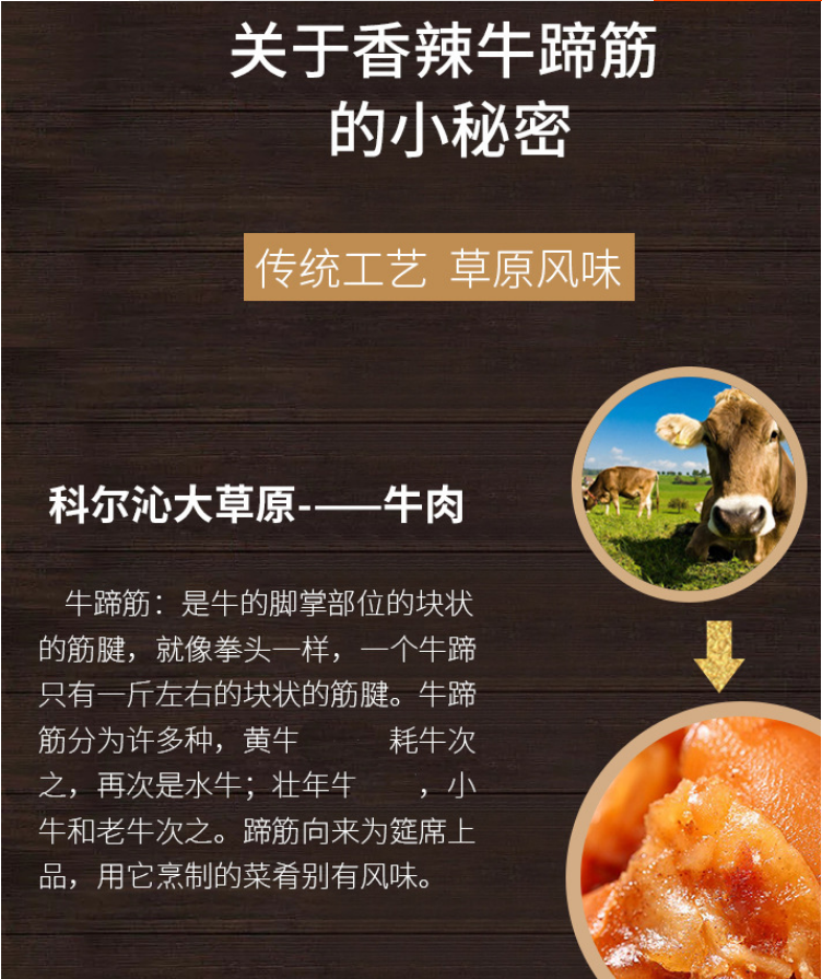商品名稱(chēng):內(nèi)蒙特產(chǎn)牛蹄筋麻辣味熱銷(xiāo)下酒休閑零食250g牛蹄筋拉鏈包裝