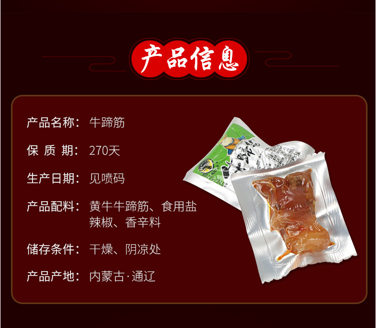 商品名稱:內(nèi)蒙古特產(chǎn)零食小吃 塔拉九牛牛蹄筋香辣味500g