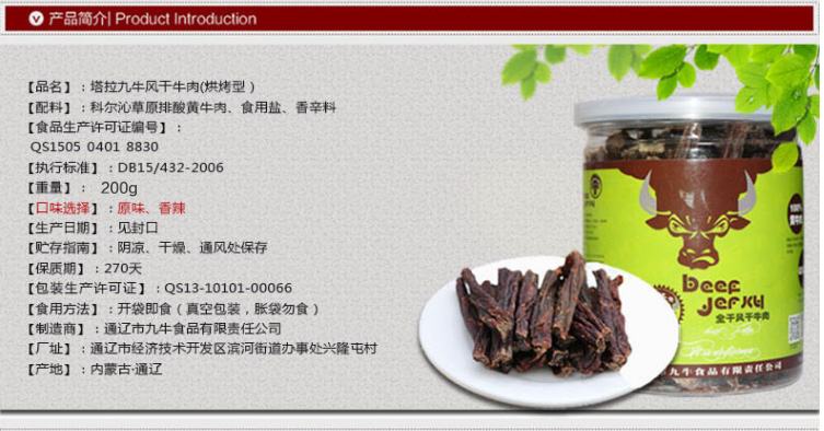 商品名稱:塔拉九牛 內(nèi)蒙古特產(chǎn) 手撕超干牛肉干200g罐裝 休閑零食小吃