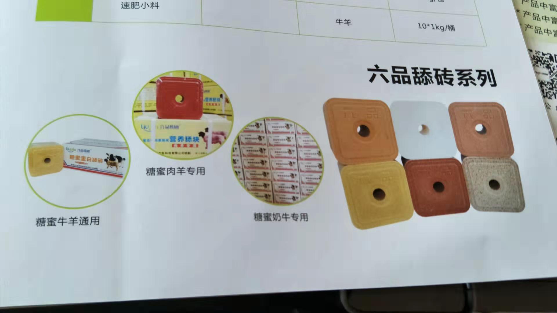 鄭州六品舔磚是國內(nèi)唯一家出口幾十個(gè)國家的產(chǎn)品。富硒復(fù)合營養(yǎng)舔磚。它的特點(diǎn)是,牛羊體內(nèi)所需求的各種不可缺少的多種微量元素。營養(yǎng)非常全面。能夠促進(jìn)食欲,提高產(chǎn)奶量。。犢牛發(fā)育不良,胎衣不下的癥狀。牛羊可以預(yù)防貧血,繁殖力下降。受孕率下降。母牛不愛發(fā)情。對牛羊啃毛有特效。牛羊根據(jù)自身的需求。適量甜食。特別適合圈養(yǎng)牲畜