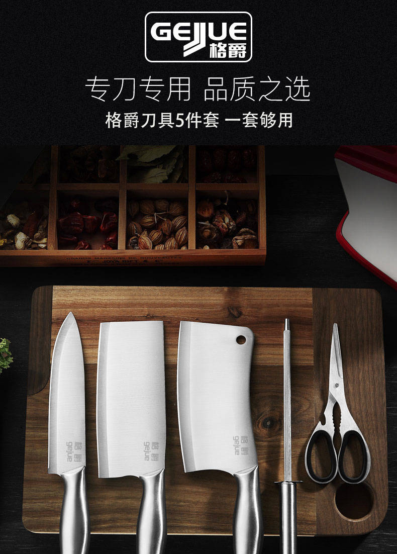 商品名稱:廚房刀具五件套組合德國(guó)工藝不銹鋼全套廚具家用切片刀菜刀