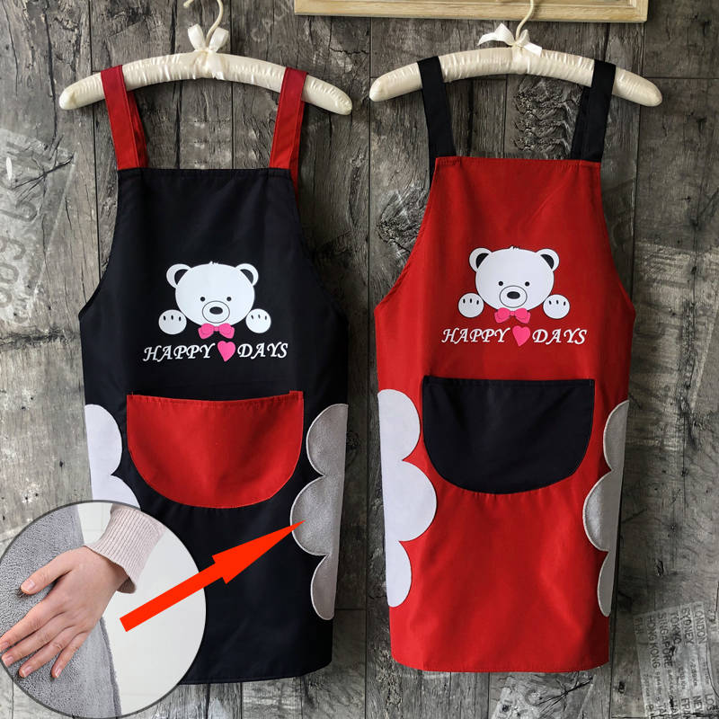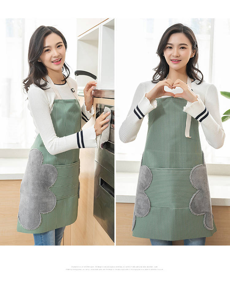 可擦手圍裙女罩衣口袋防水油廚房可愛新款工作服成人做飯勞保干活