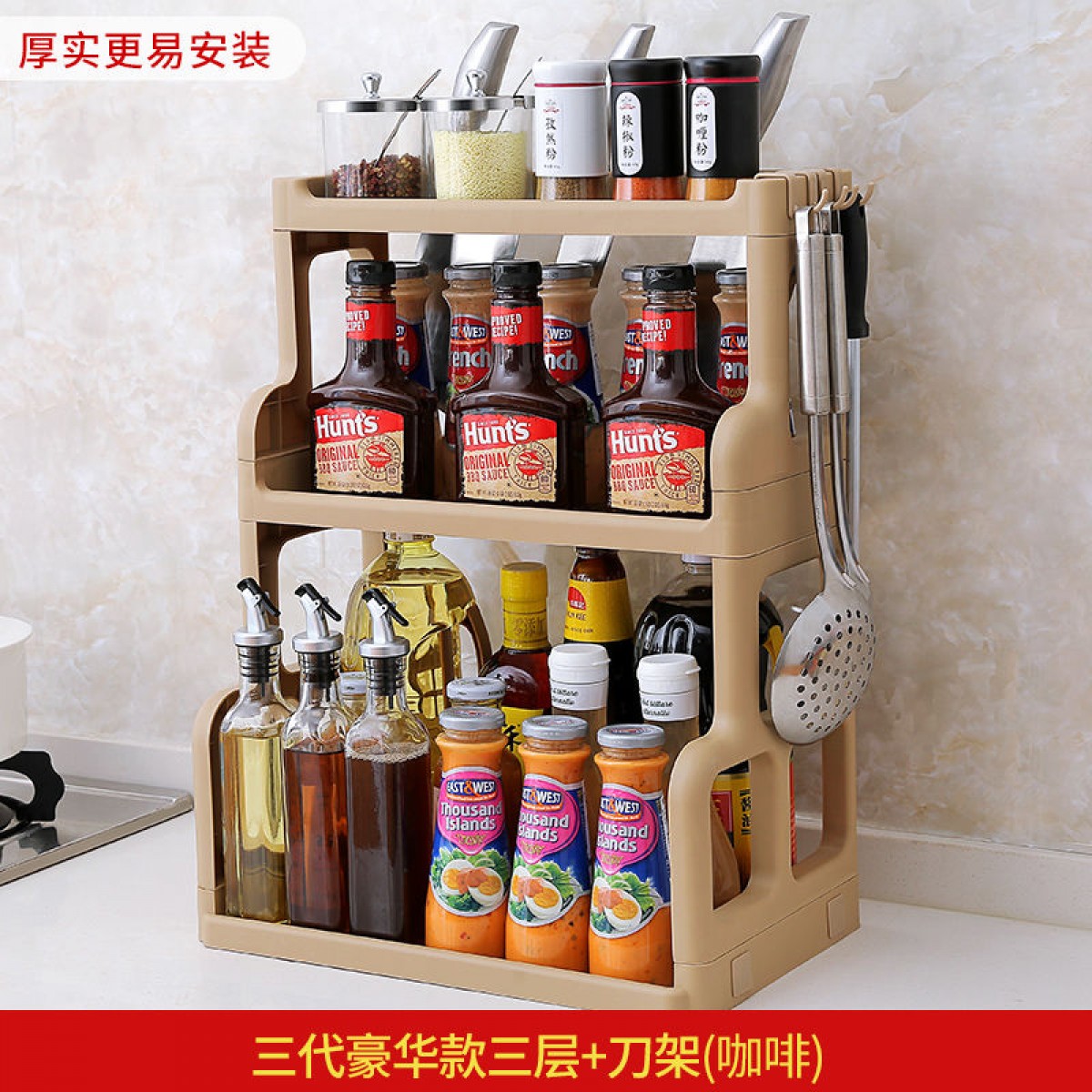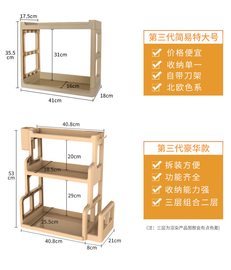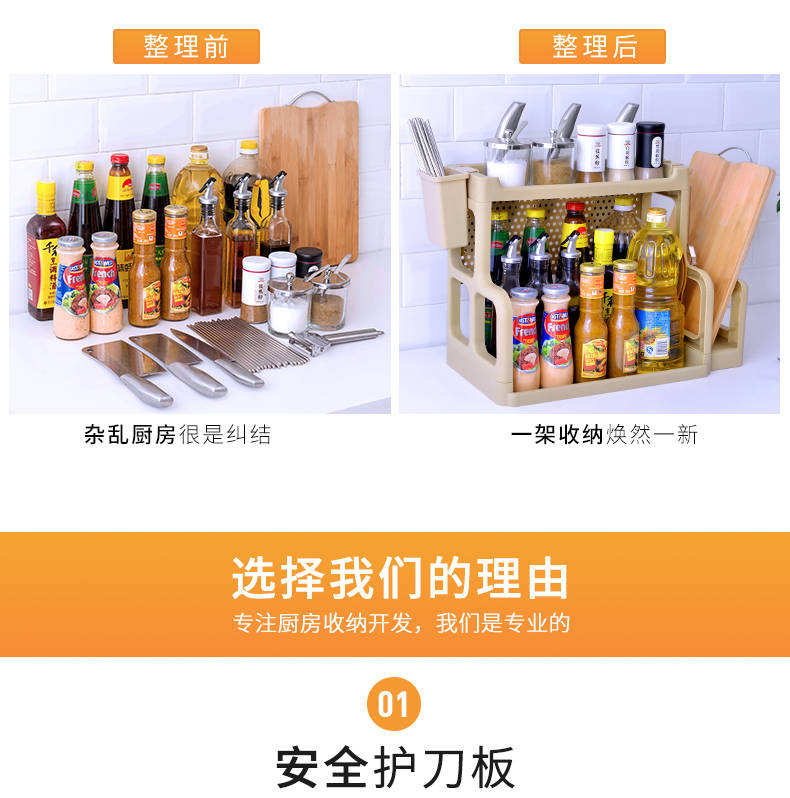商品名稱:廚房置物架調(diào)料架廚具塑料用品用具收納臺面儲物架多層砧板架子