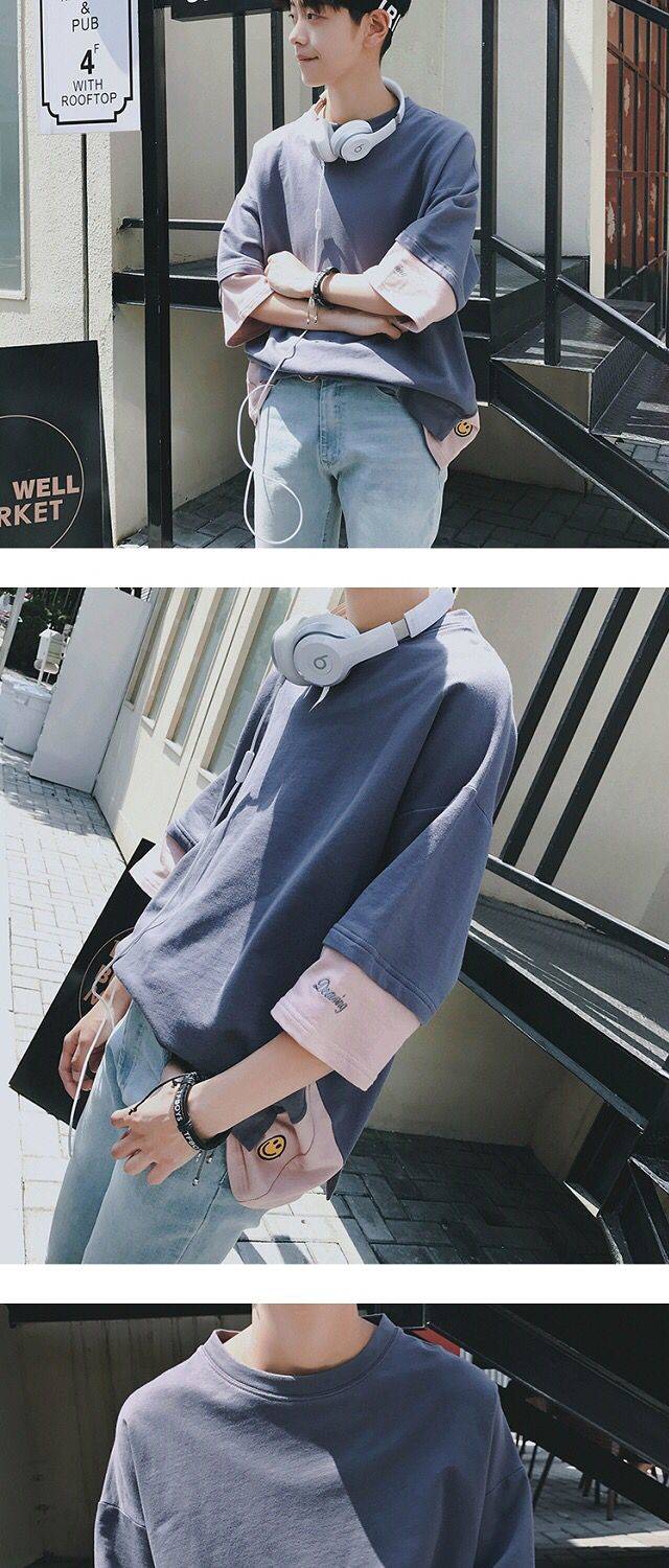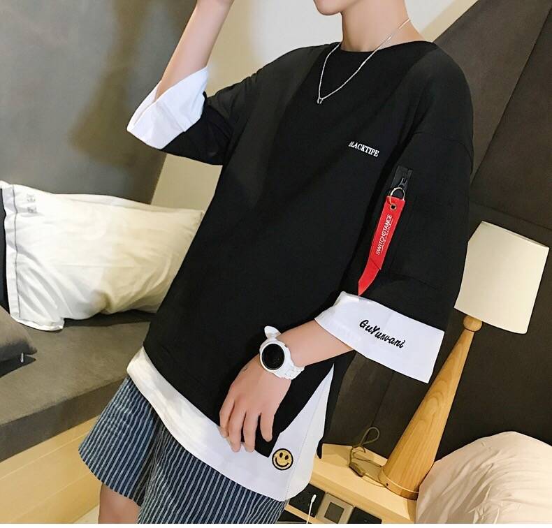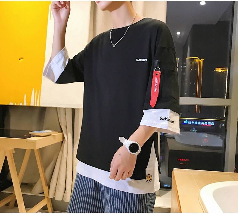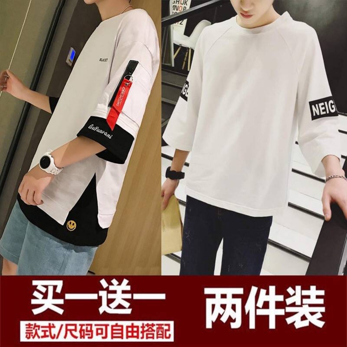 商品名稱(chēng):男裝秋季男士長(zhǎng)袖t恤韓版寬松青少年衣服男學(xué)生七分袖上衣半袖夏