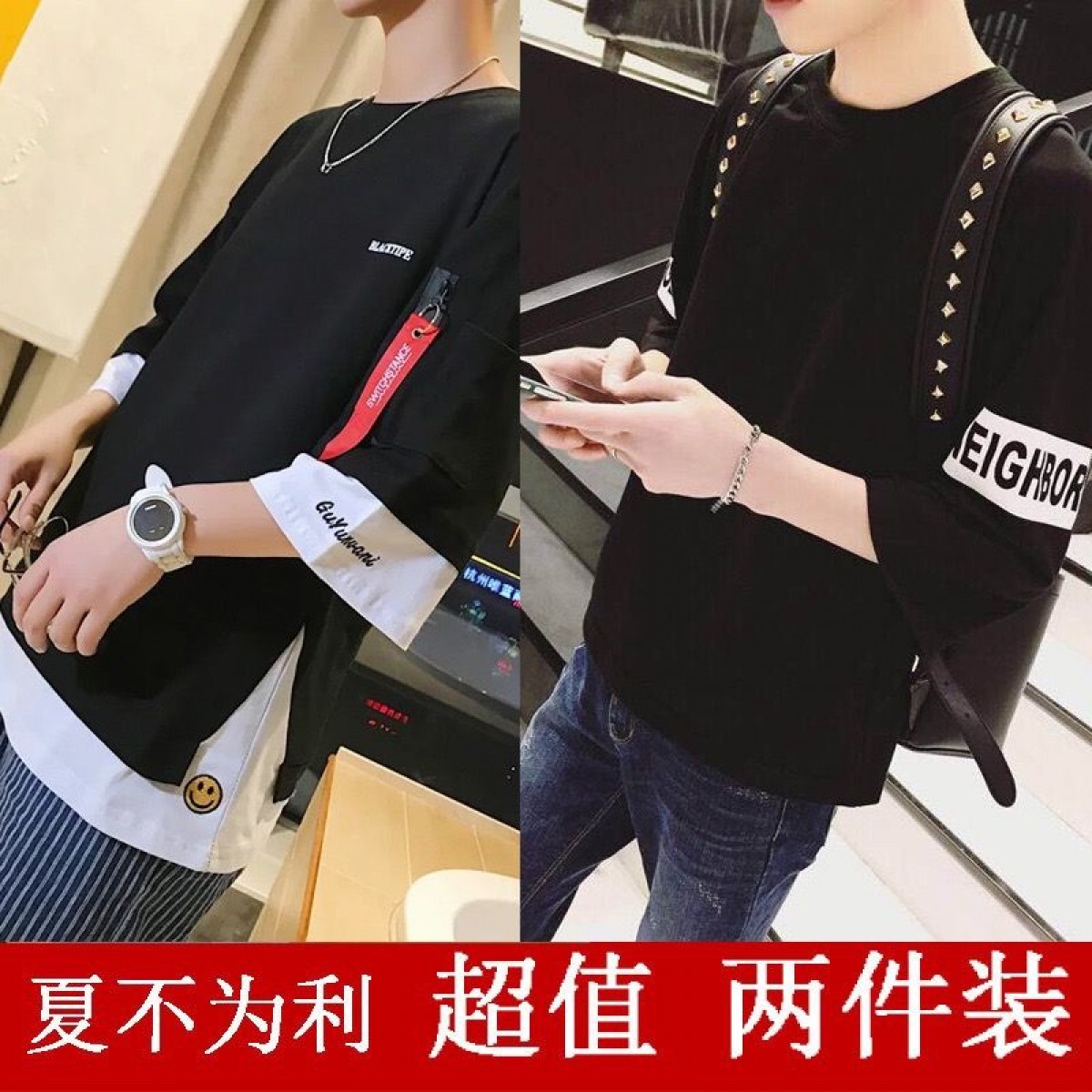 男裝秋季男士長(zhǎng)袖t恤韓版寬松青少年衣服男學(xué)生七分袖上衣半袖夏