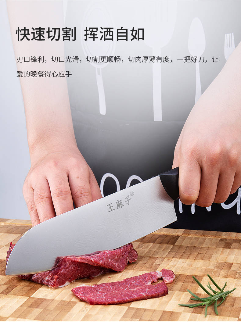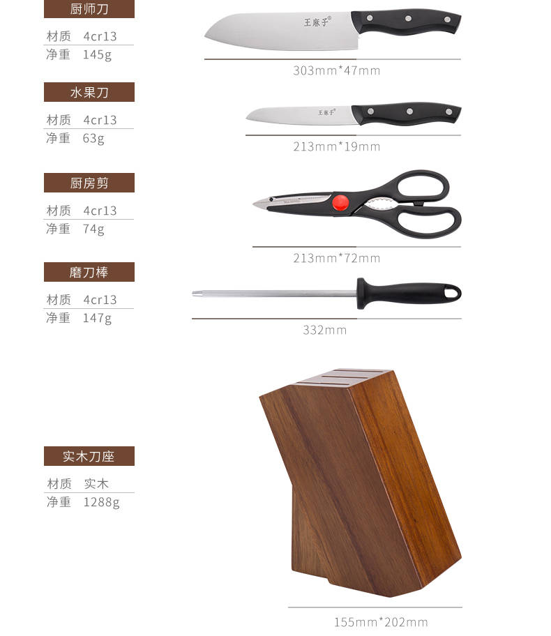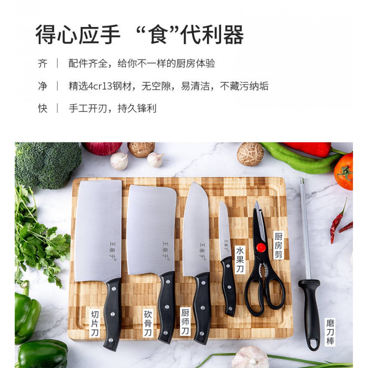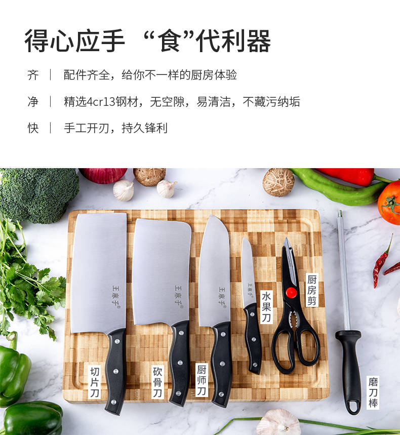 商品名稱:王麻子七件套裝菜刀家用廚房用品刀具砍骨切片切肉水果刀開刃棒