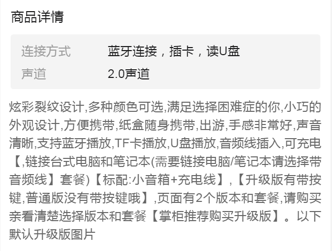 聲音清晰、支持藍牙播放、TF卡播放、U盤播放、