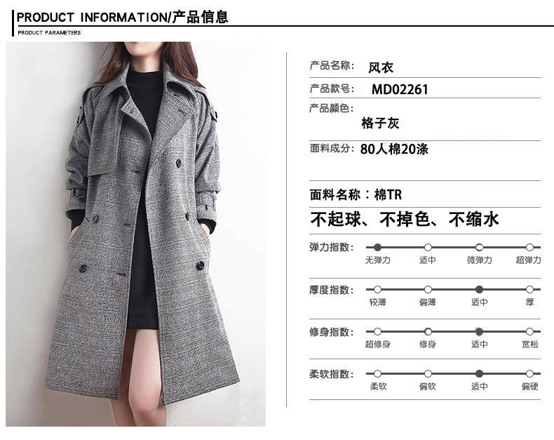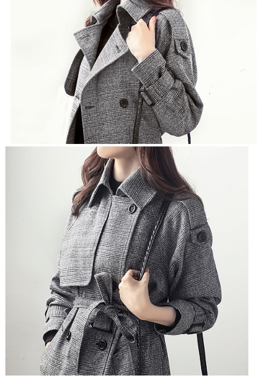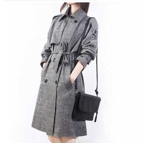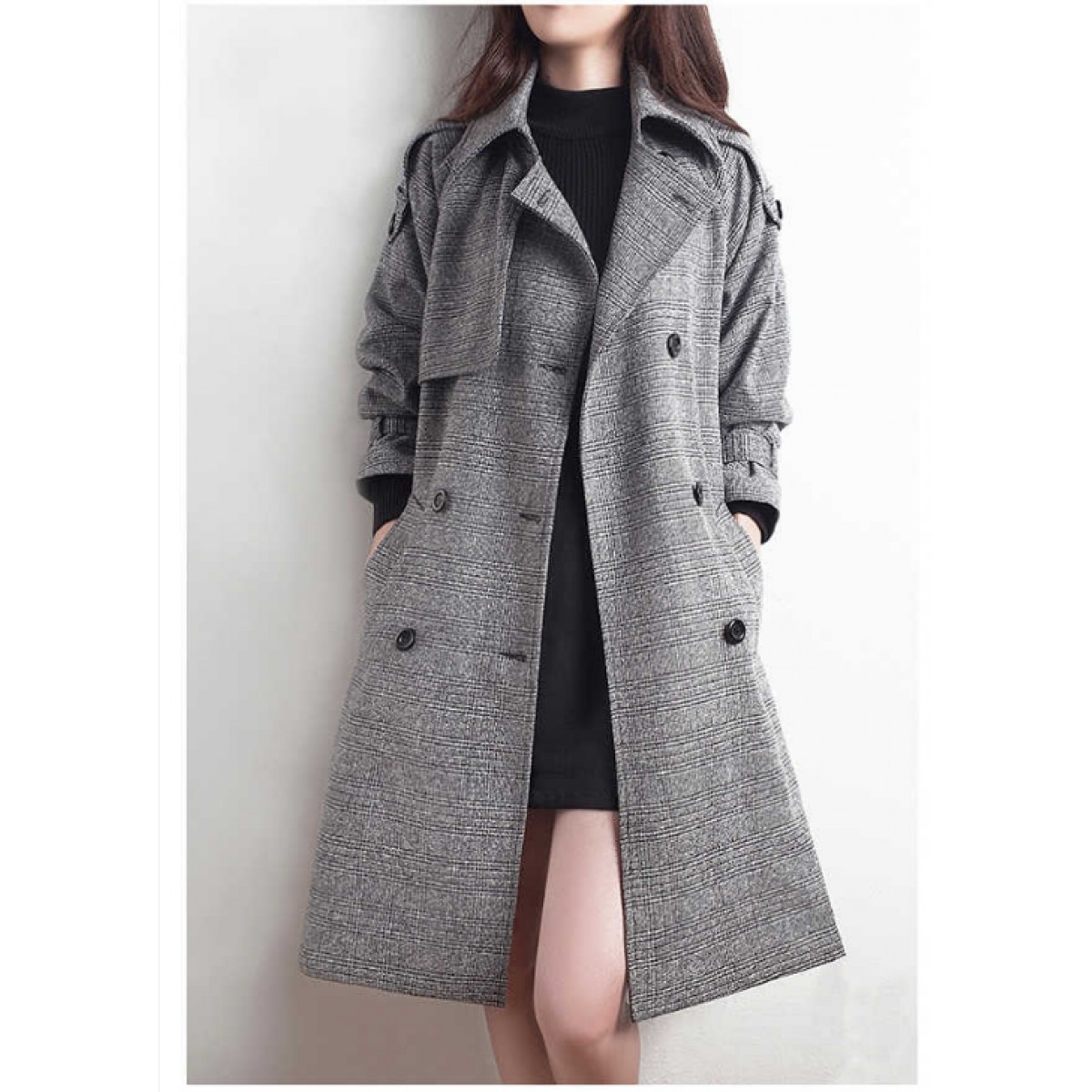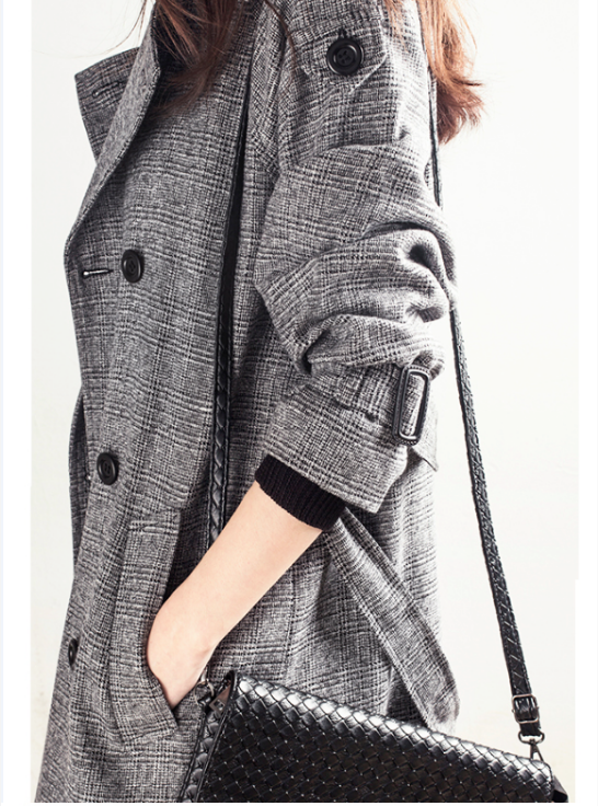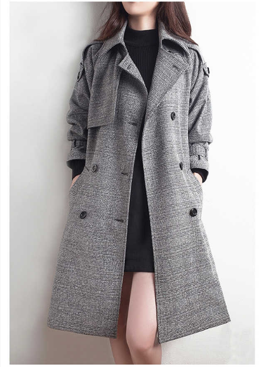 商品名稱:【好質(zhì)量雙排扣大衣】風(fēng)衣女春秋外套女韓版女裝中長款修身格子