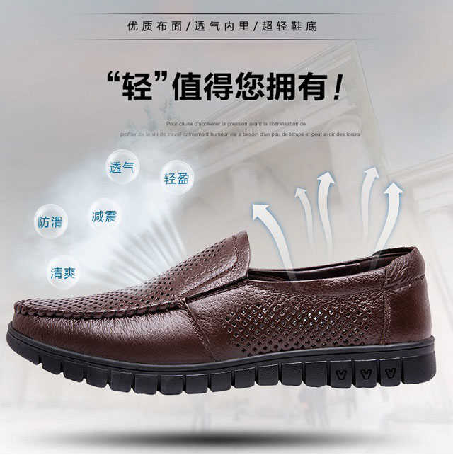 商品名稱:男鞋真皮鏤空休閑涼皮鞋【頭層牛皮】防滑爸爸鞋涼鞋男大碼