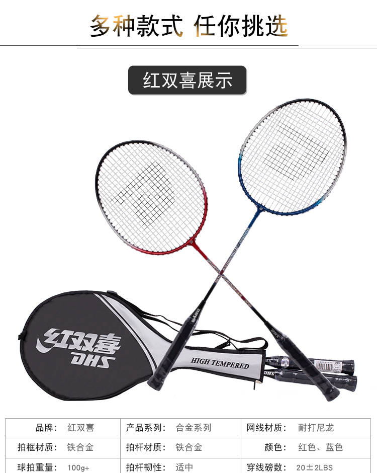 商品名稱:紅雙喜成人訓練超輕羽毛球拍雙拍進攻型初學生耐打羽拍2支裝