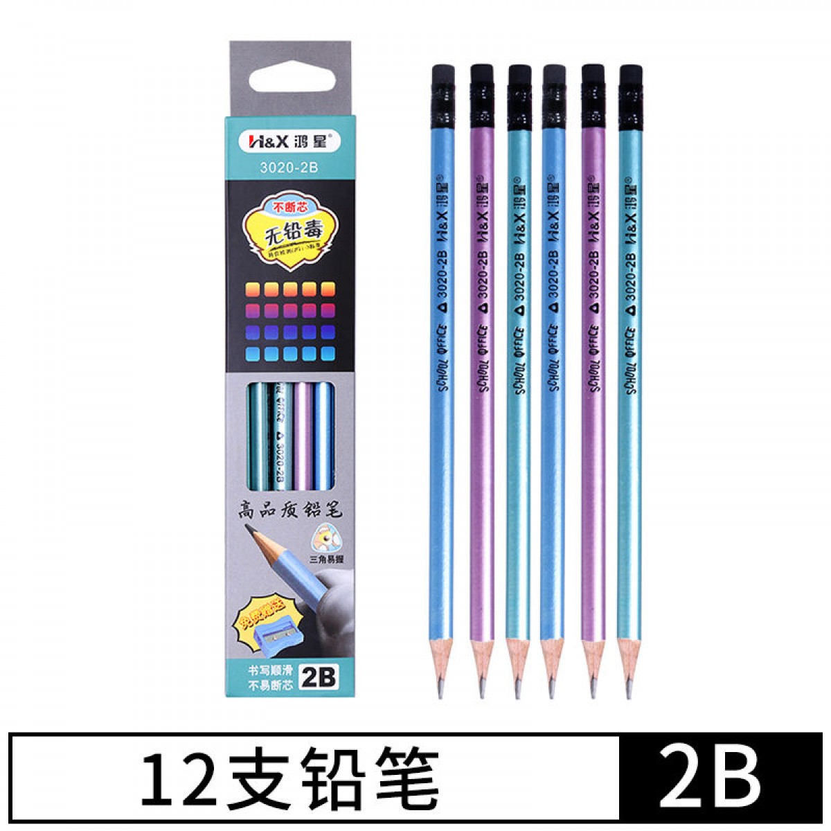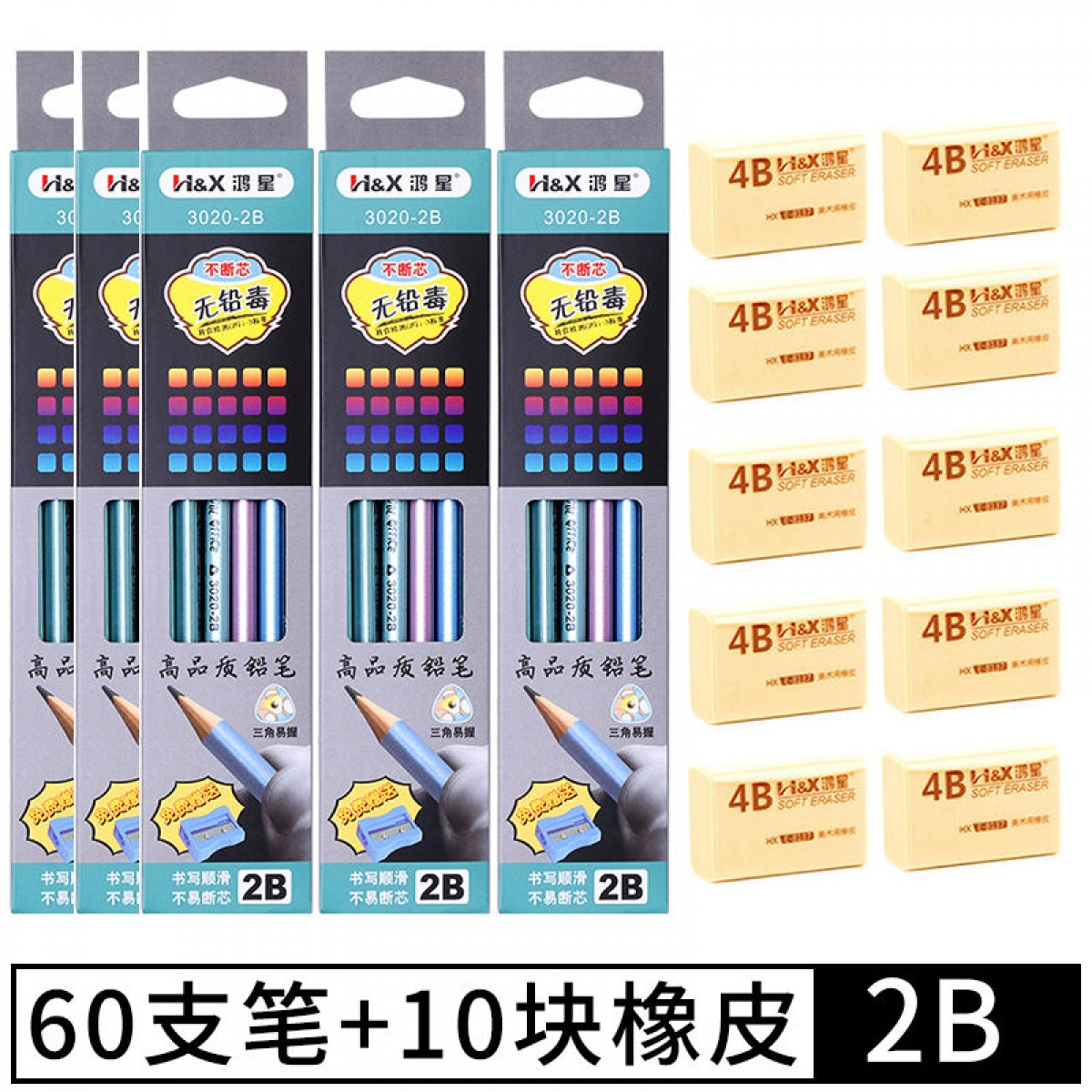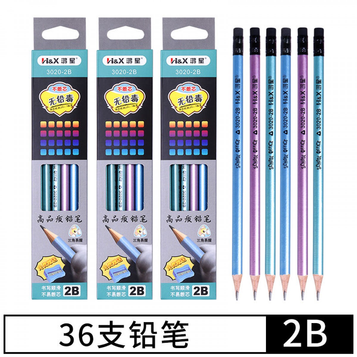 商品名稱:考試專用三角2b鉛筆套裝小學生兒童自動筆素描無毒文具