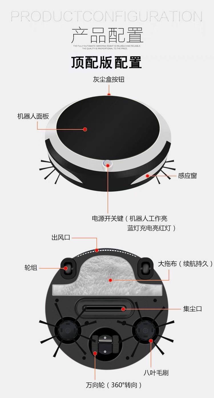 商品名稱:家用全自動(dòng)掃拖一體智能掃地機(jī)器人三合一小型超薄掃地拖地擦地機(jī)