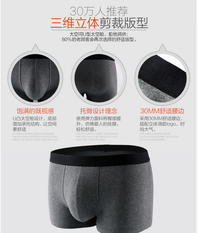 商品名稱:男士內褲 男 平角褲純棉質吸汗透氣青年中腰U凸四角褲頭