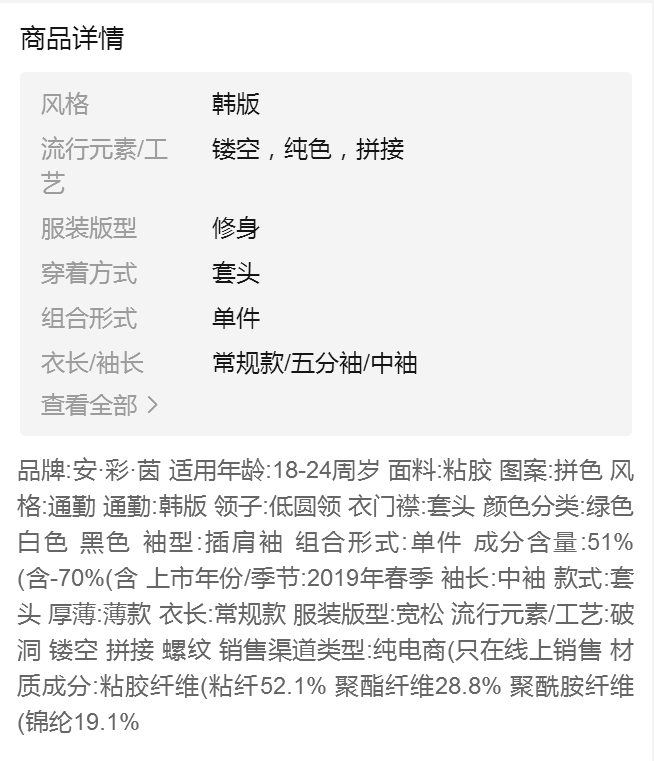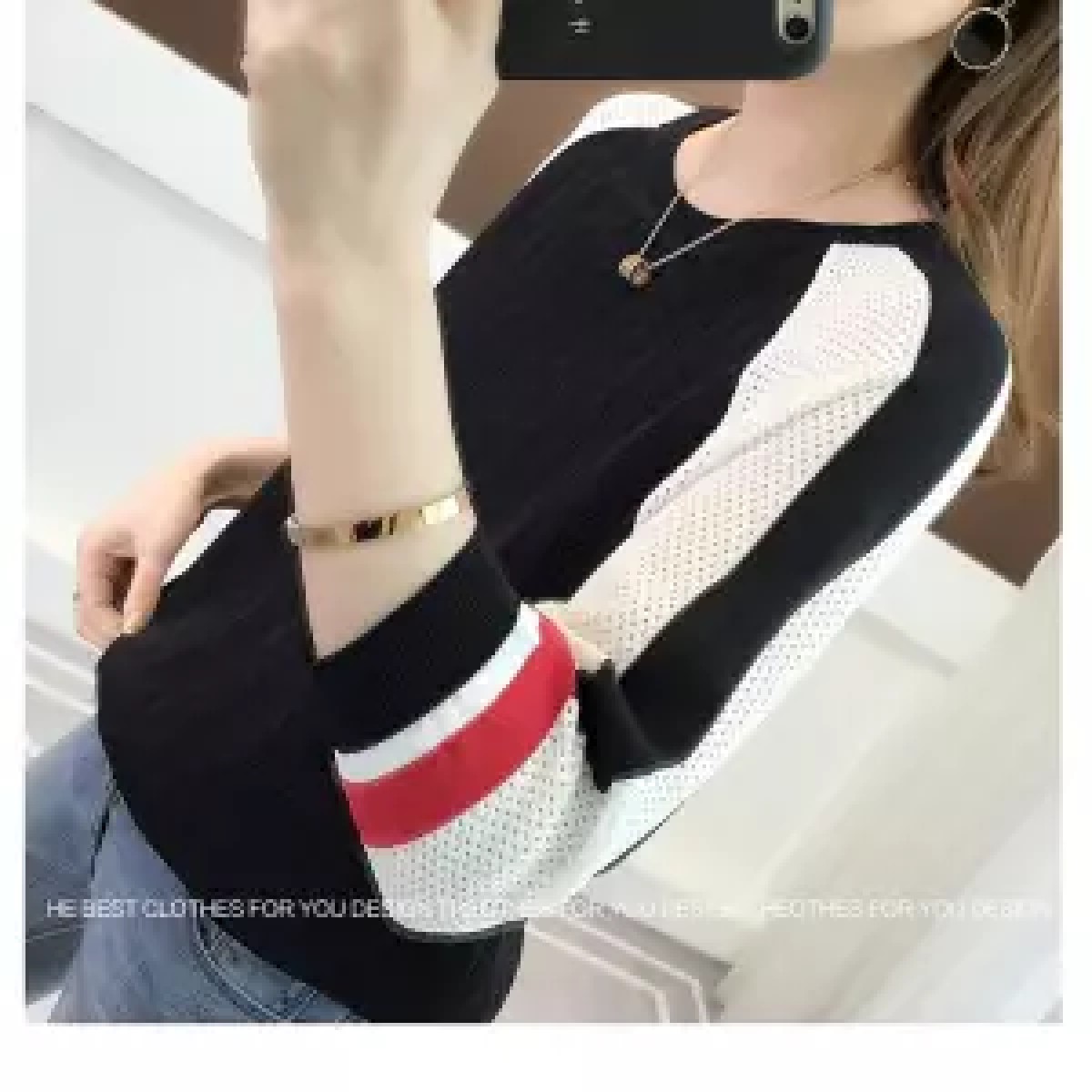 商品名稱:2019秋裝新款洞洞毛衣中袖上衣鏤空針織薄款冰絲打底衫女寬松韓版
