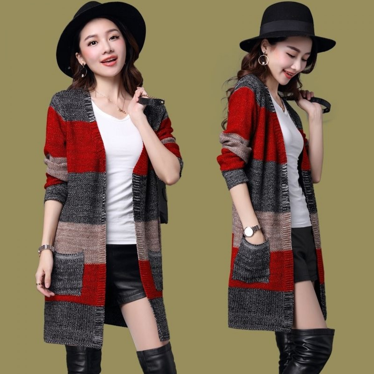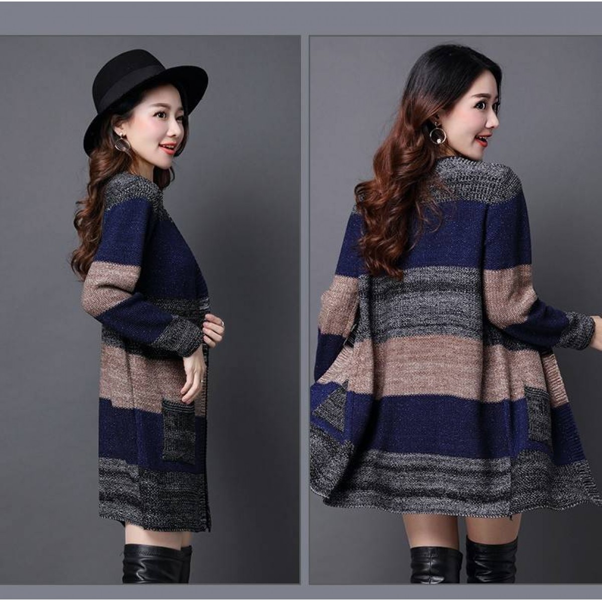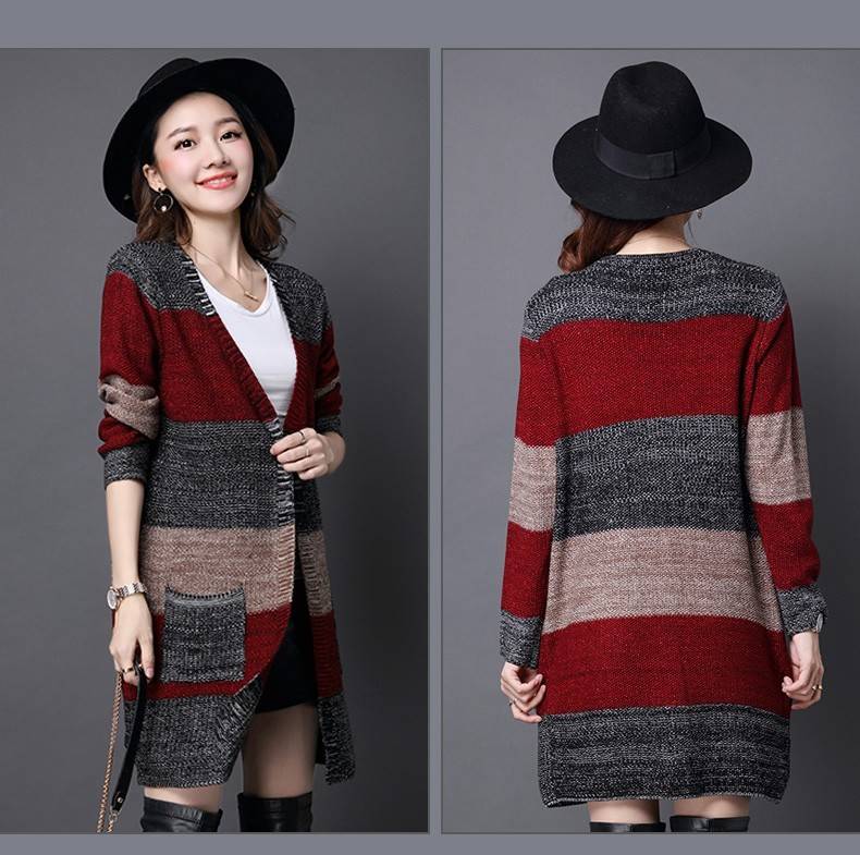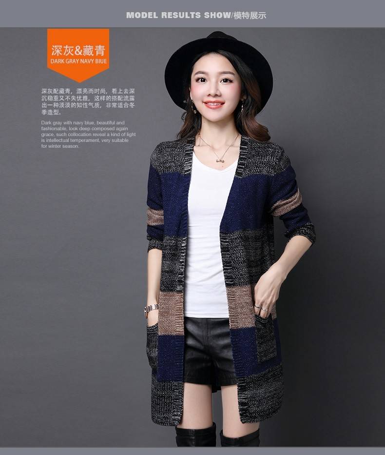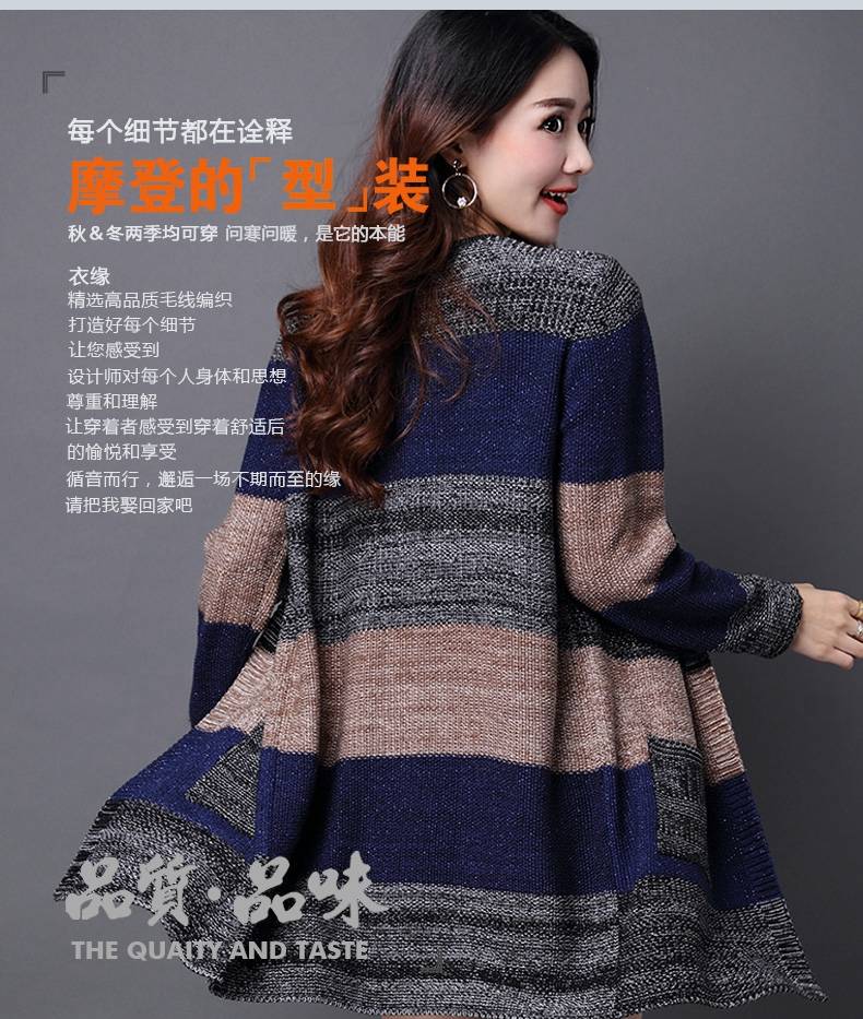 商品名稱:秋冬新款韓版大版毛衣女針織衫外套大碼寬松百搭中長款開衫毛衣外套新