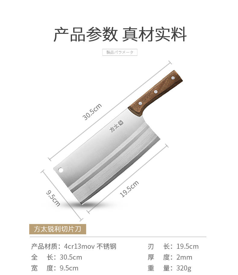 商品名稱:方太不銹鋼菜刀家用鋒利切菜刀廚房刀具廚師切片刀