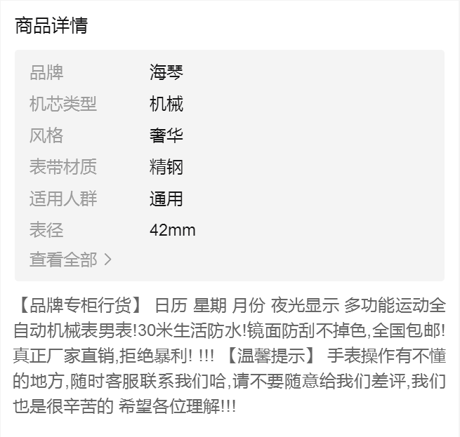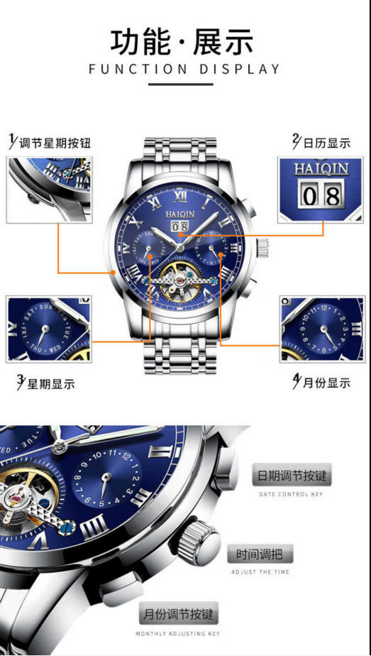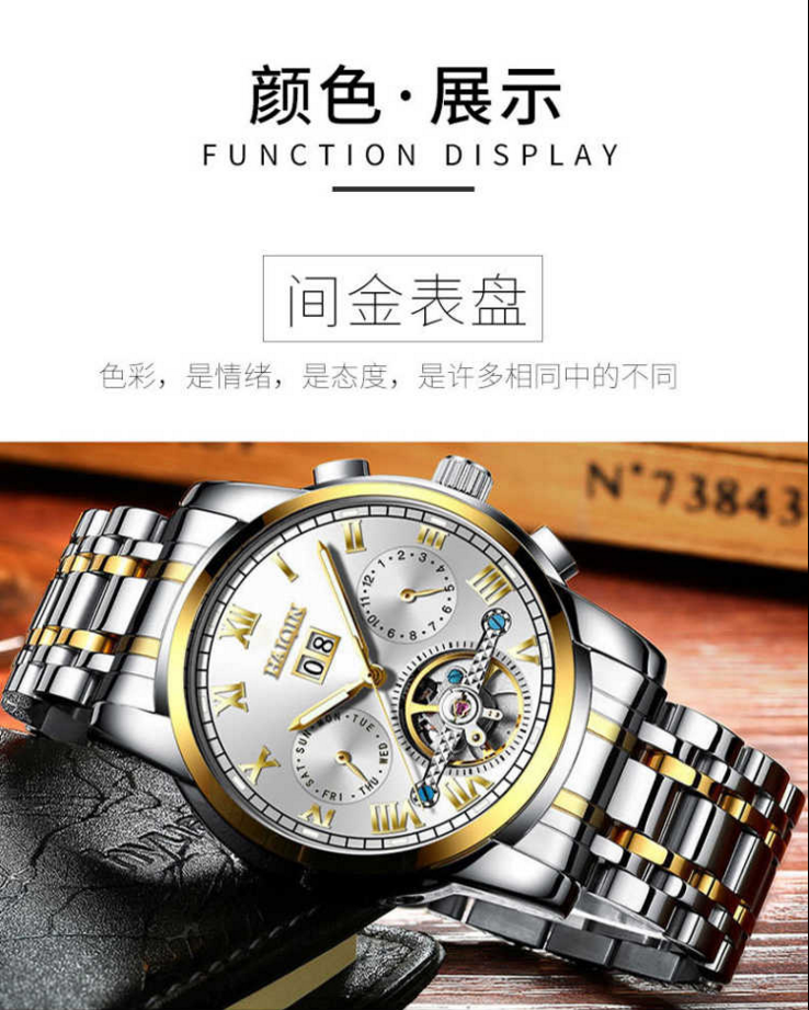 商品名稱:【品牌專柜行貨 瑞士名表】 自動機械表男士手表夜光表防水男表男