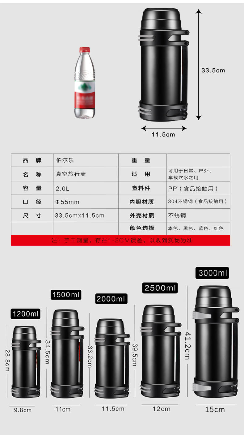 商品名稱:戶外大容量保溫杯304不銹鋼保溫壺男女旅行保冷壺旅游行壺1.1-3L