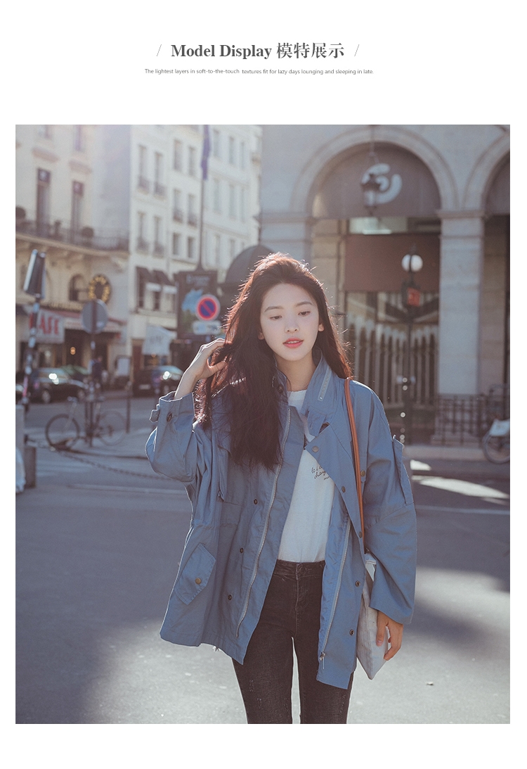 商品名稱:2019新款短款外套女韓版寬松bf原宿學(xué)生港風(fēng)夾克工裝風(fēng)衣春秋