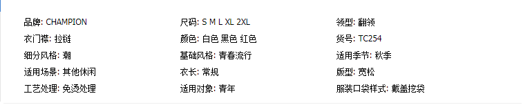 商品名稱(chēng):日版冠軍Champion夾克男女長(zhǎng)袖外套男開(kāi)衫情侶款寬松立領(lǐng)外套潮牌