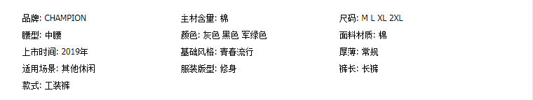 商品名稱:2019日版冠軍champion休閑褲男寬松工裝褲女長褲九分褲子潮流