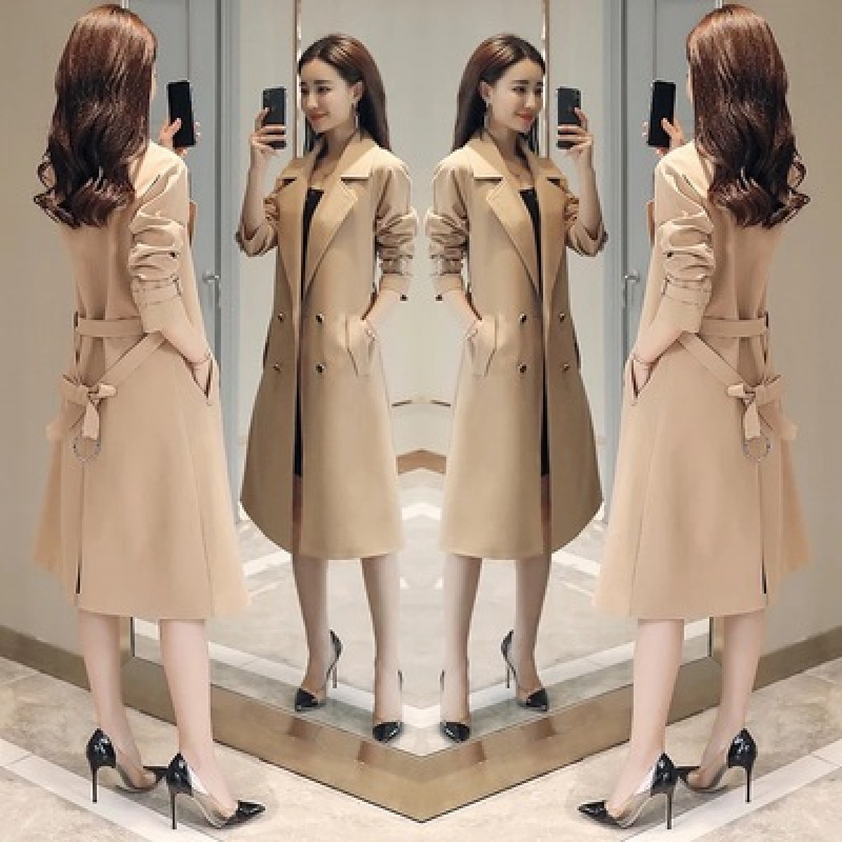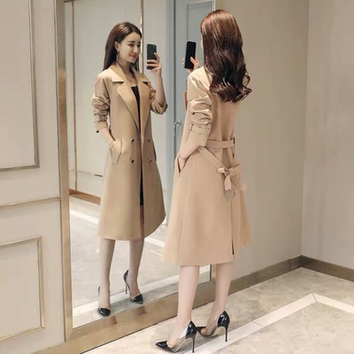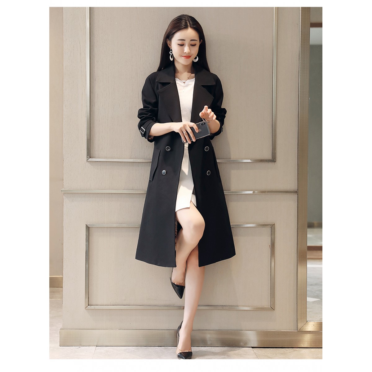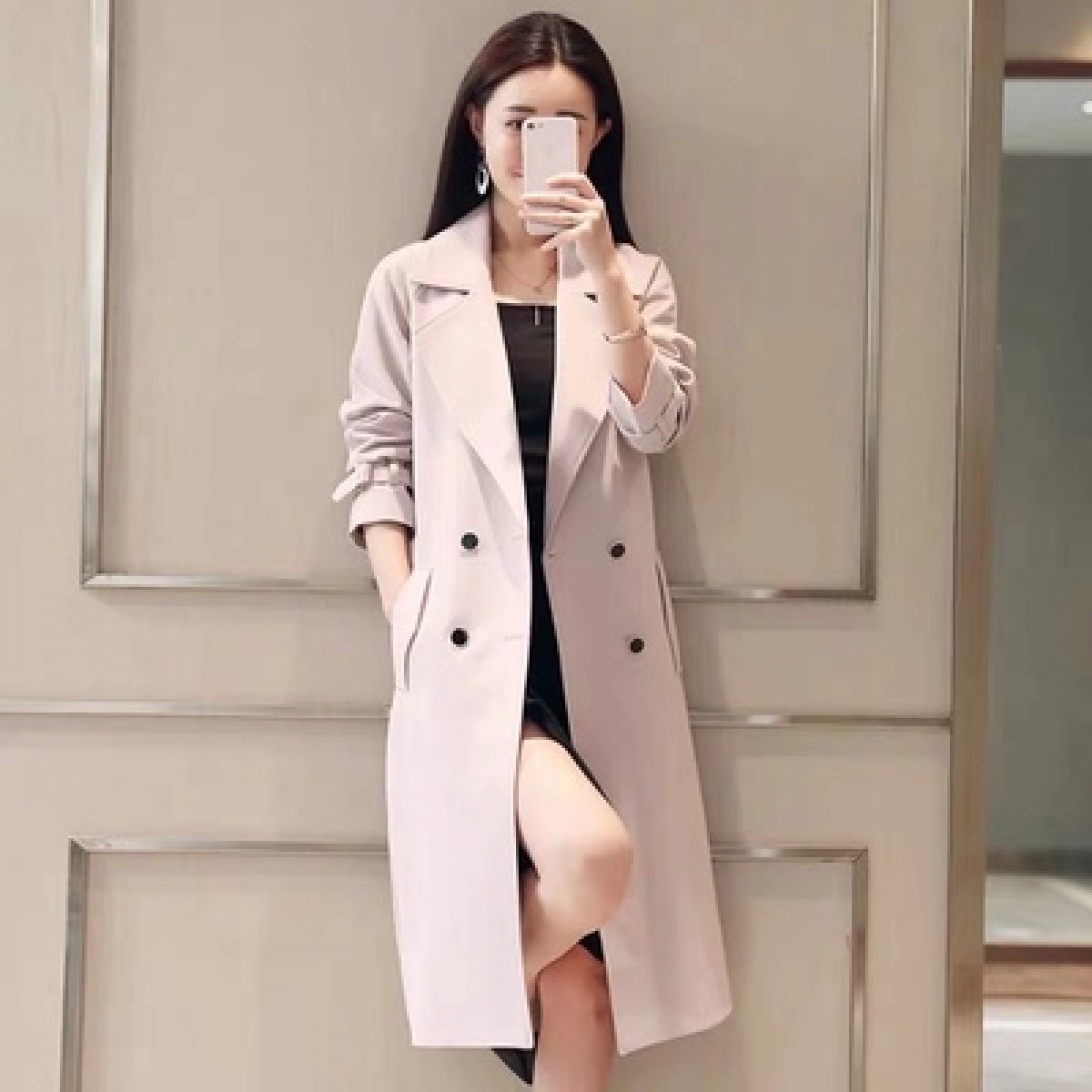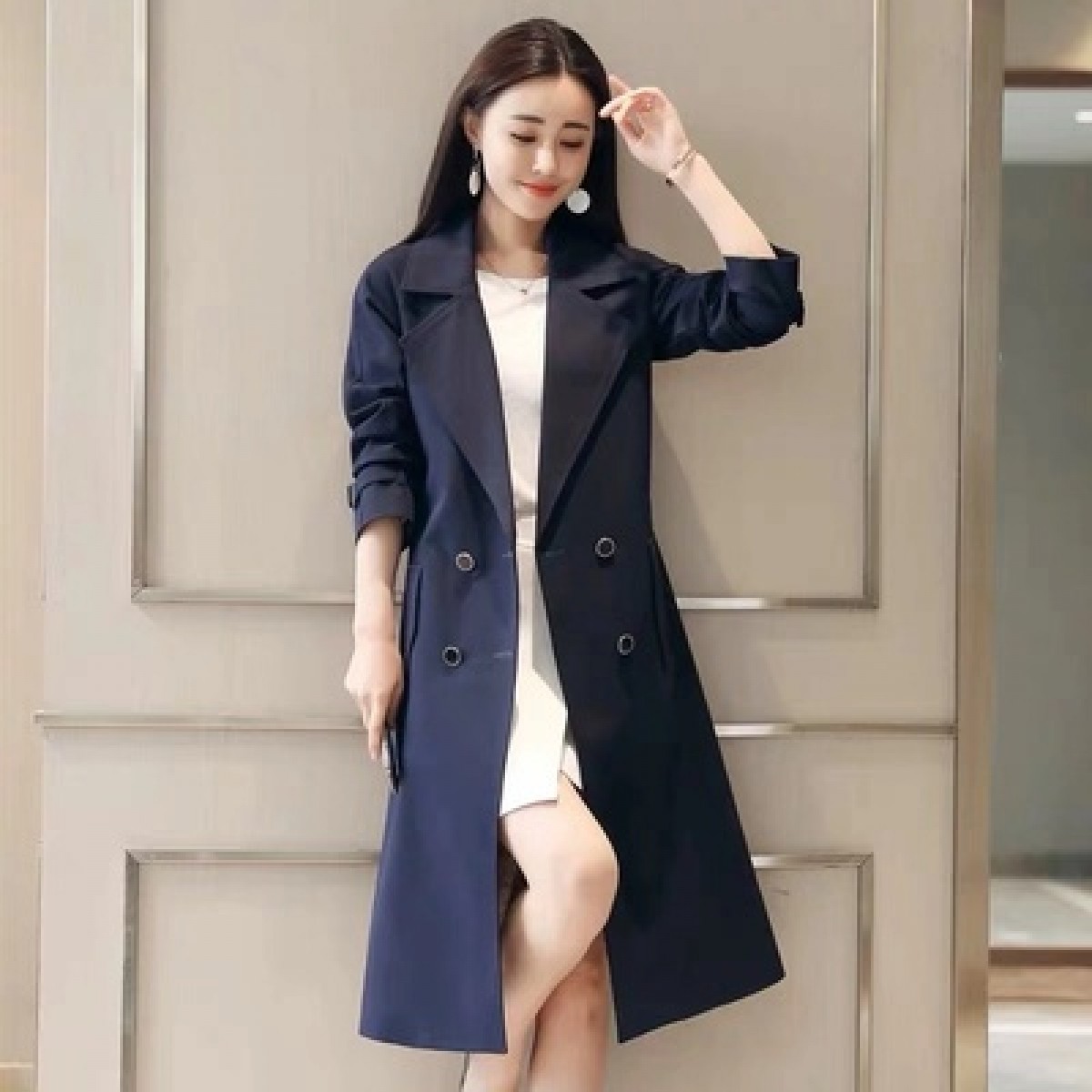 商品名稱:秋裝新款風(fēng)衣女中長(zhǎng)款端莊大氣顯瘦大碼春秋韓版寬松過膝外套