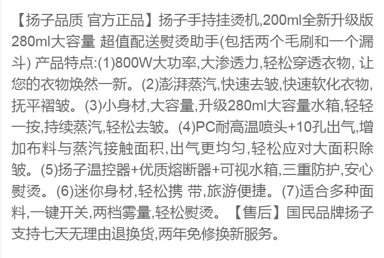 商品名稱:揚(yáng)子手持掛燙機(jī)家用蒸汽熨斗迷你熨衣服機(jī)小型便攜式熨燙機(jī)熨燙斗