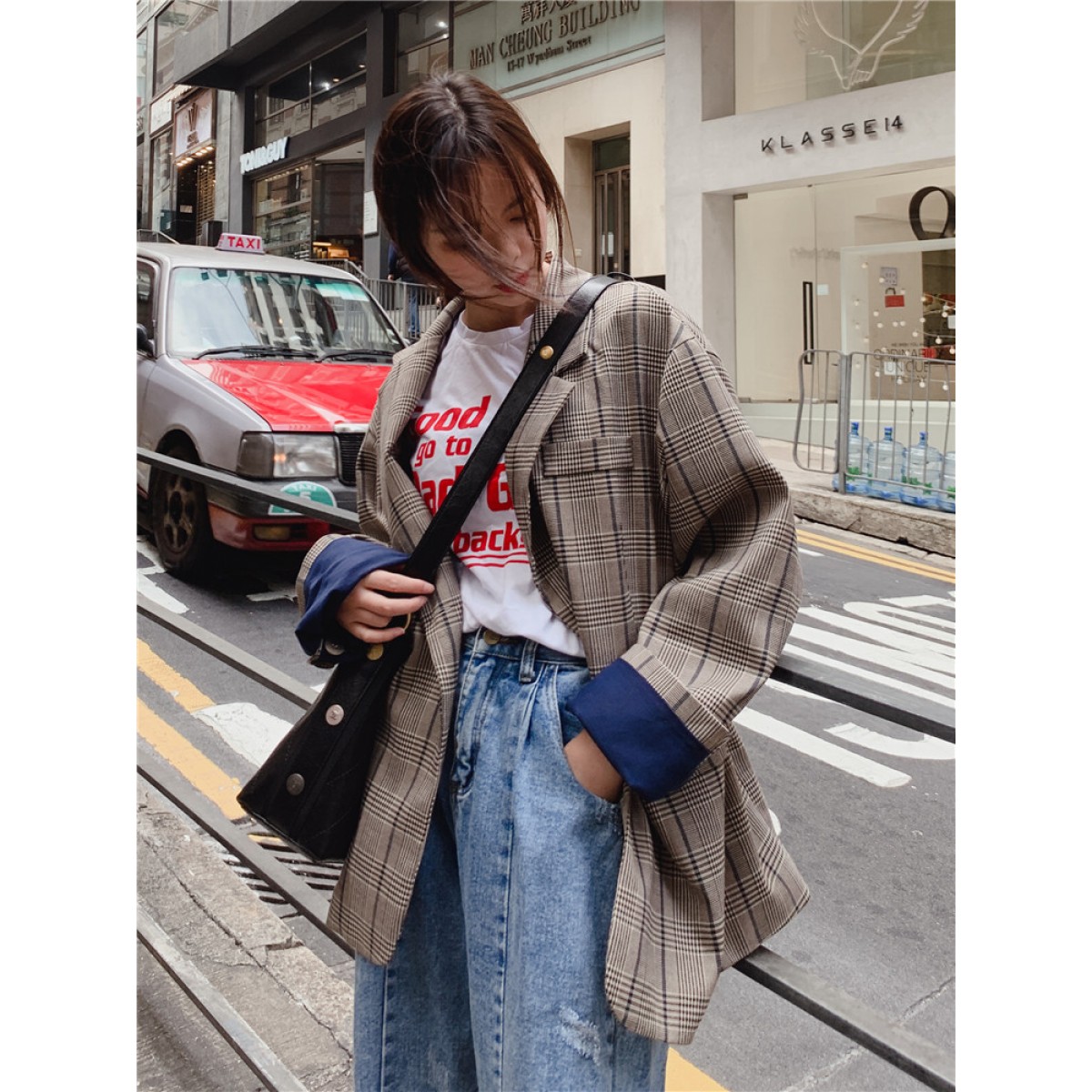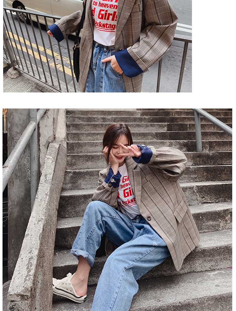 商品名稱(chēng):chic小西裝外套女新款女裝韓版寬松春裝網(wǎng)紅學(xué)生bf格子西服潮