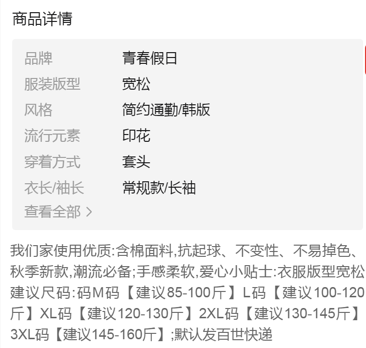 商品名稱:2019新網(wǎng)紅假兩件衛(wèi)衣女秋款大碼女裝秋裝寬松外套ins潮
