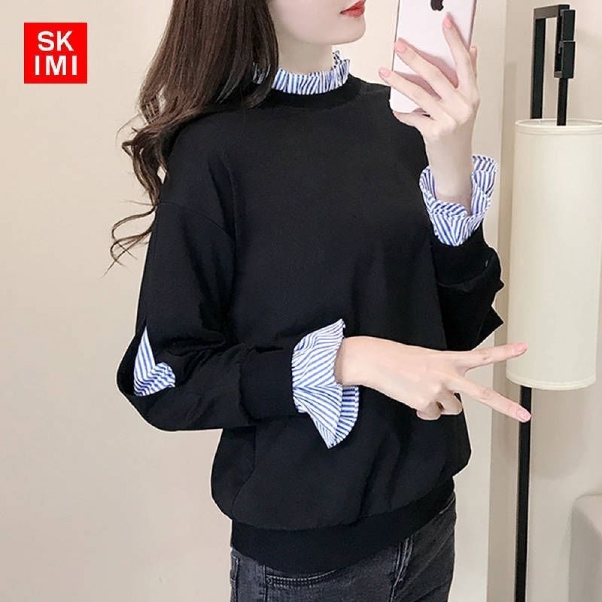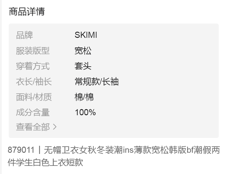 商品名稱:純棉衛(wèi)衣女秋冬裝潮ins薄款寬松韓版bf潮假兩件學(xué)生上衣短款