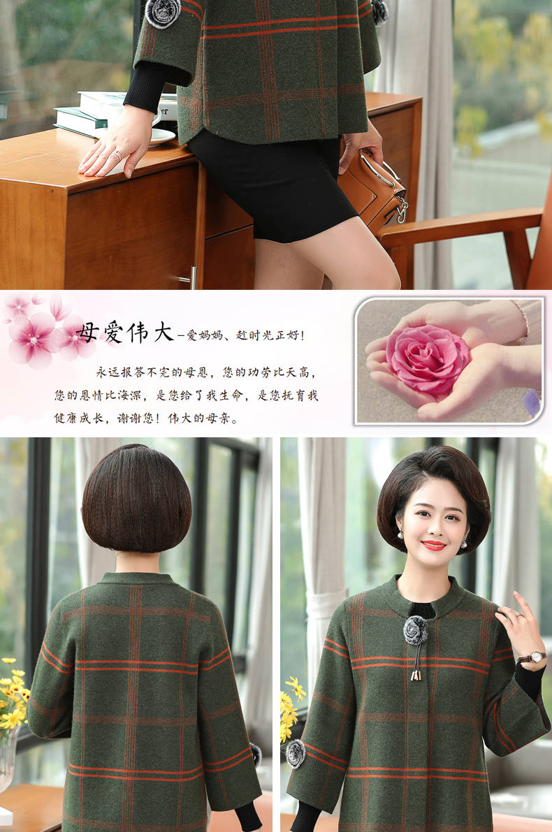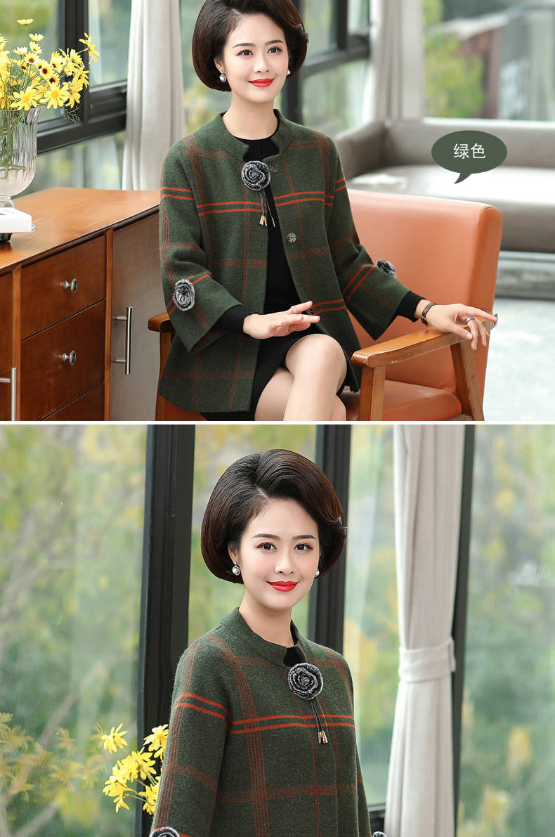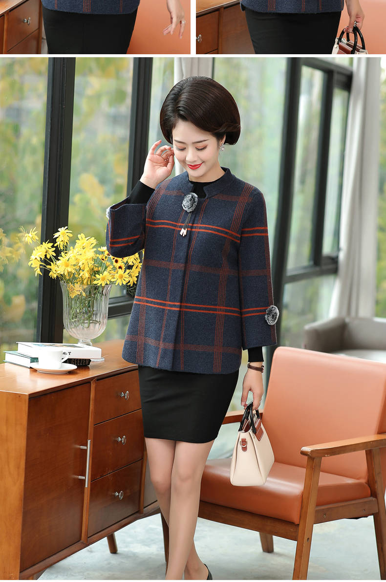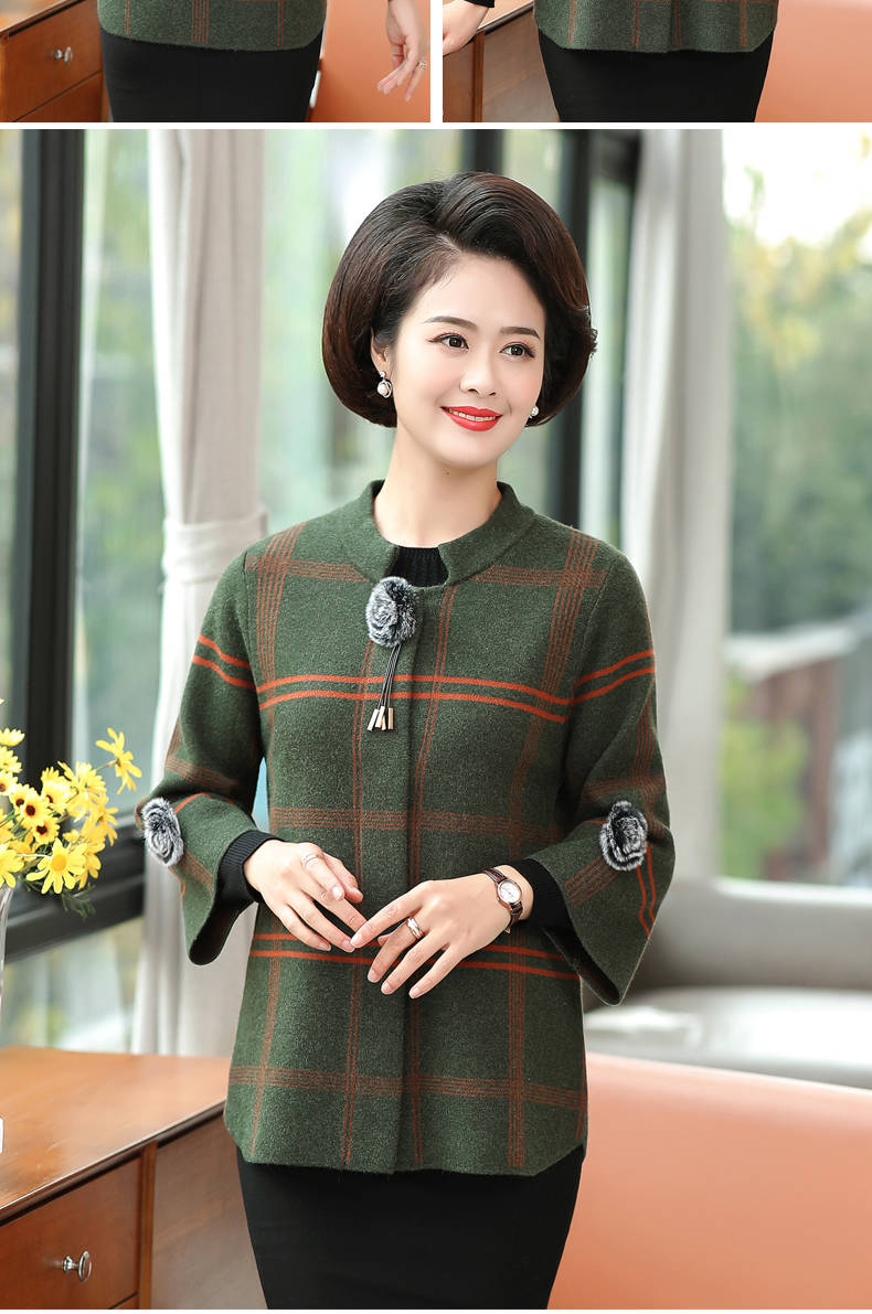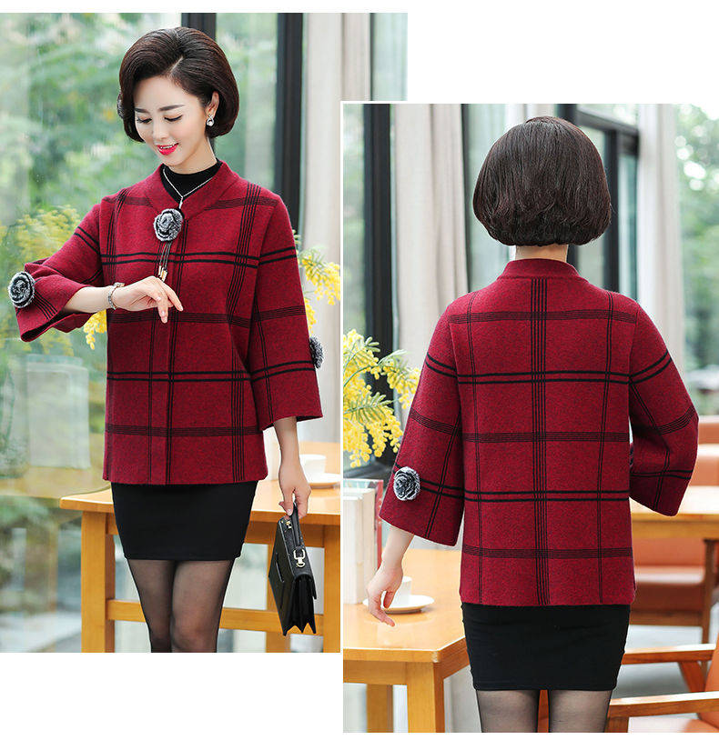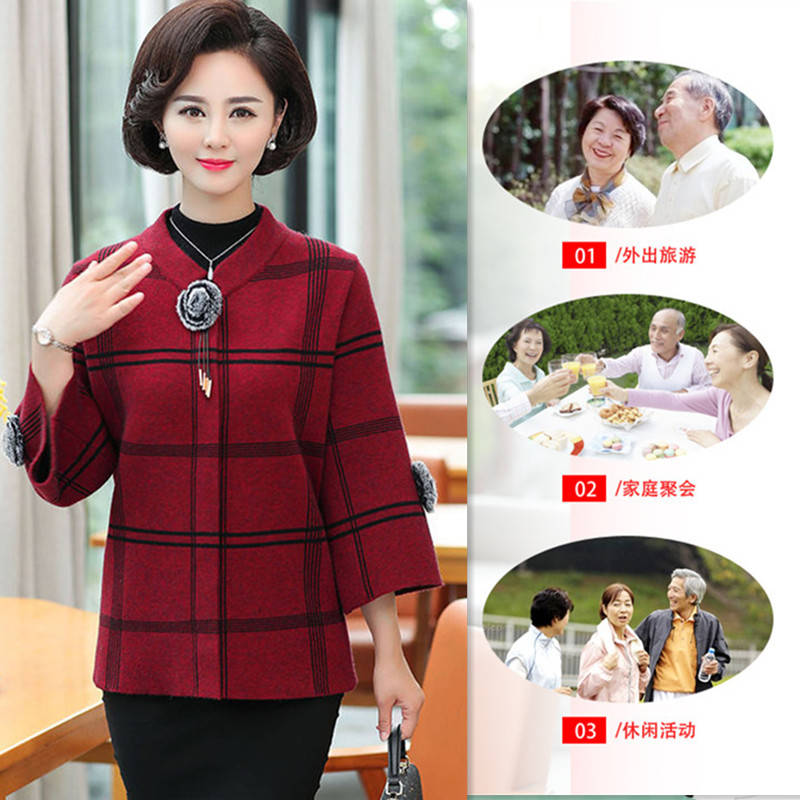 商品名稱:2019新款短款格子毛衣媽媽裝秋裝針織外套中老年女裝洋氣薄款開衫