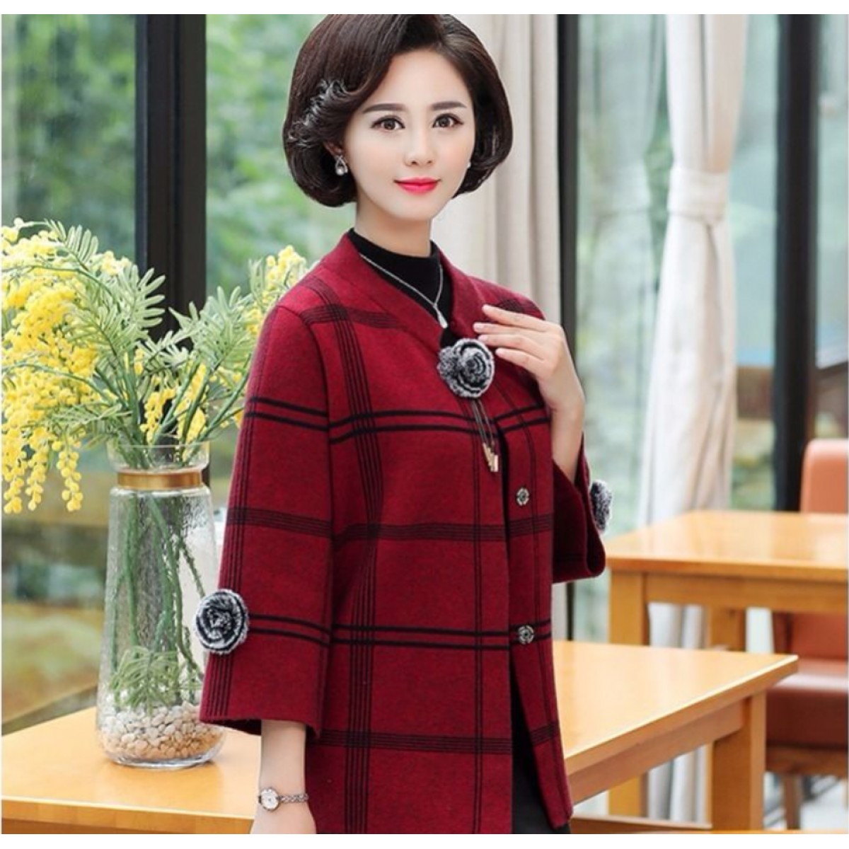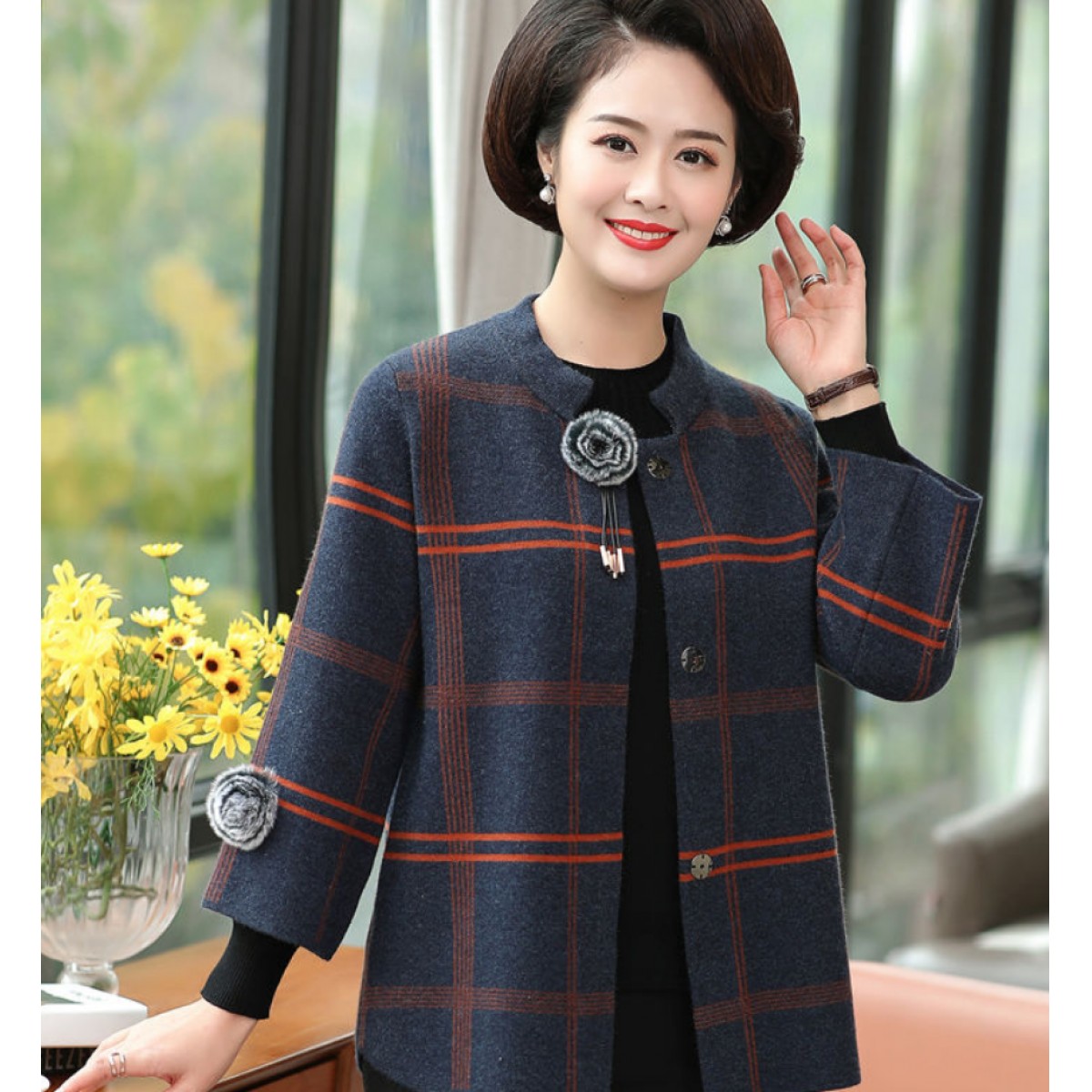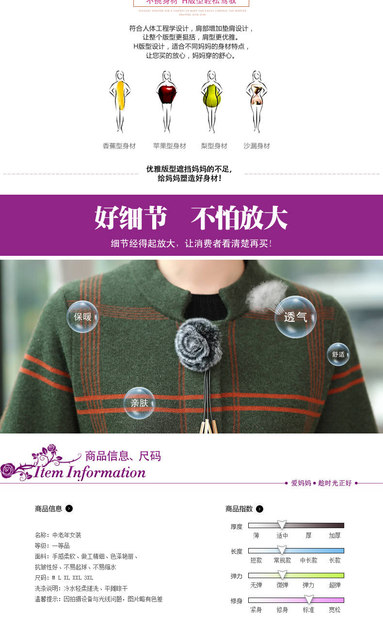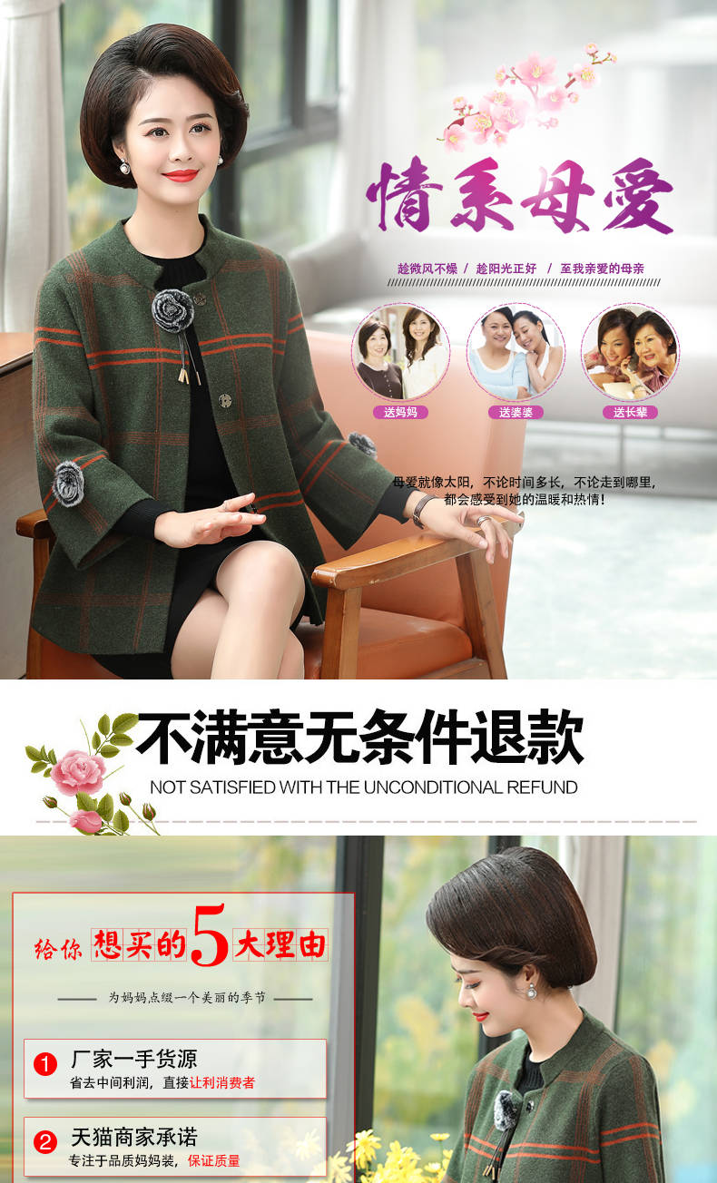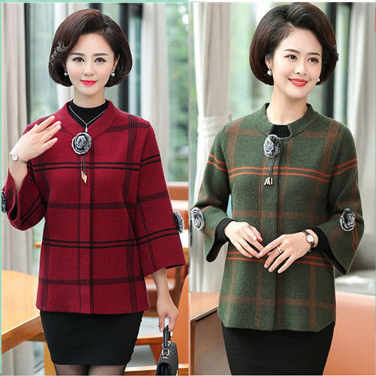 商品名稱:2019新款短款格子毛衣媽媽裝秋裝針織外套中老年女裝洋氣薄款開衫