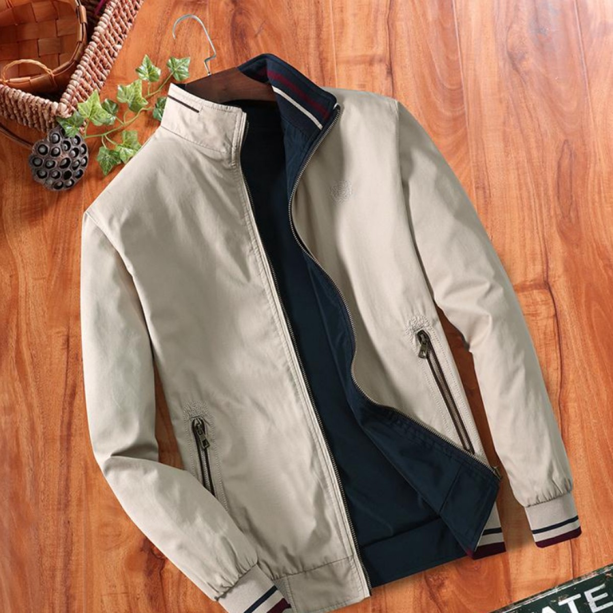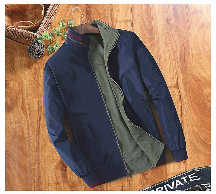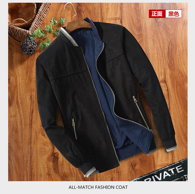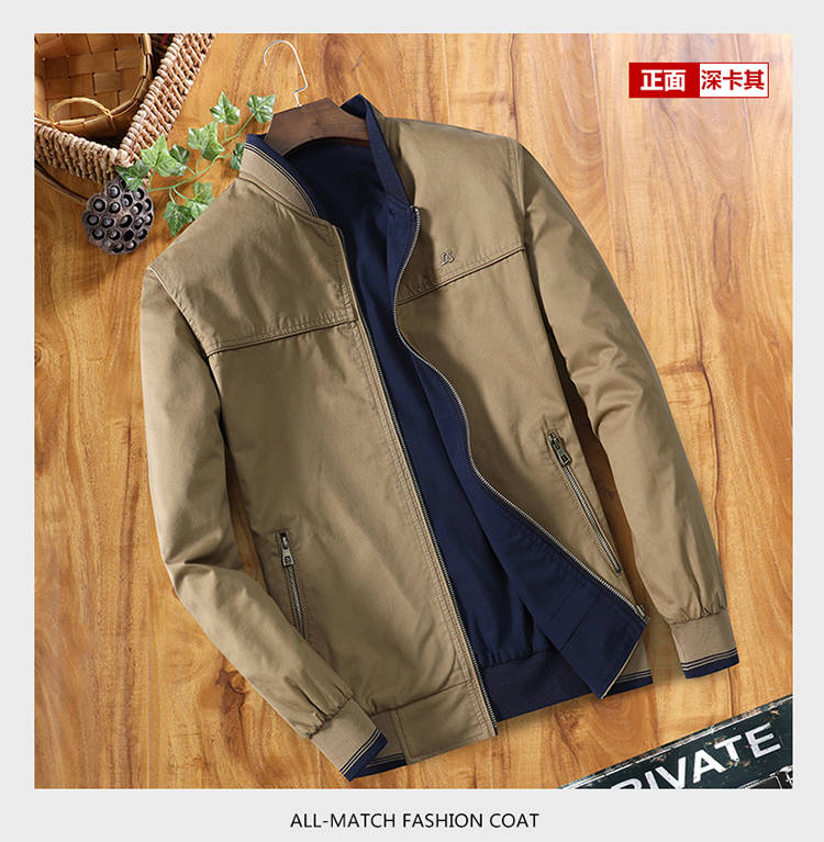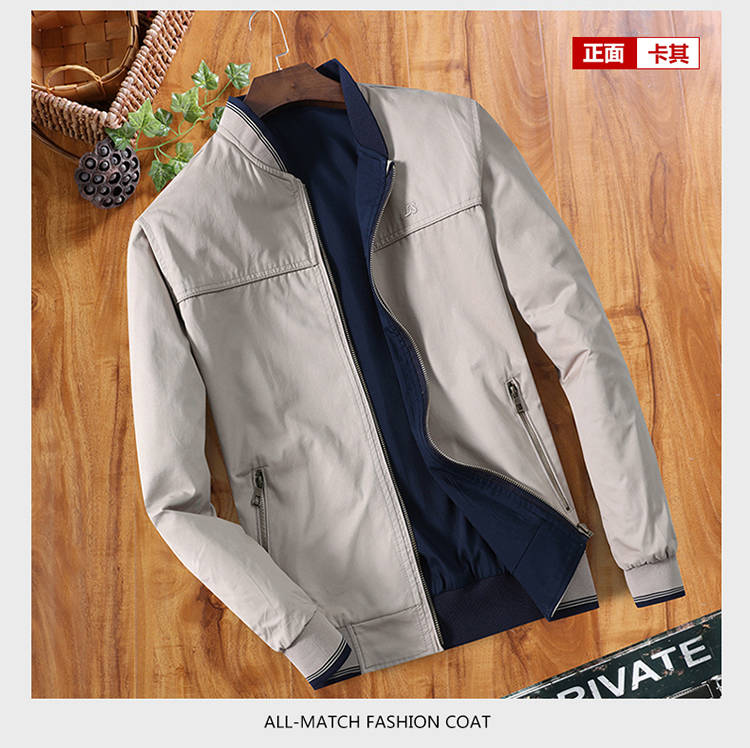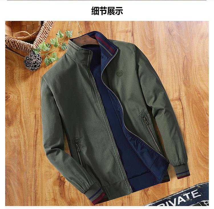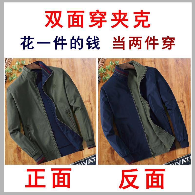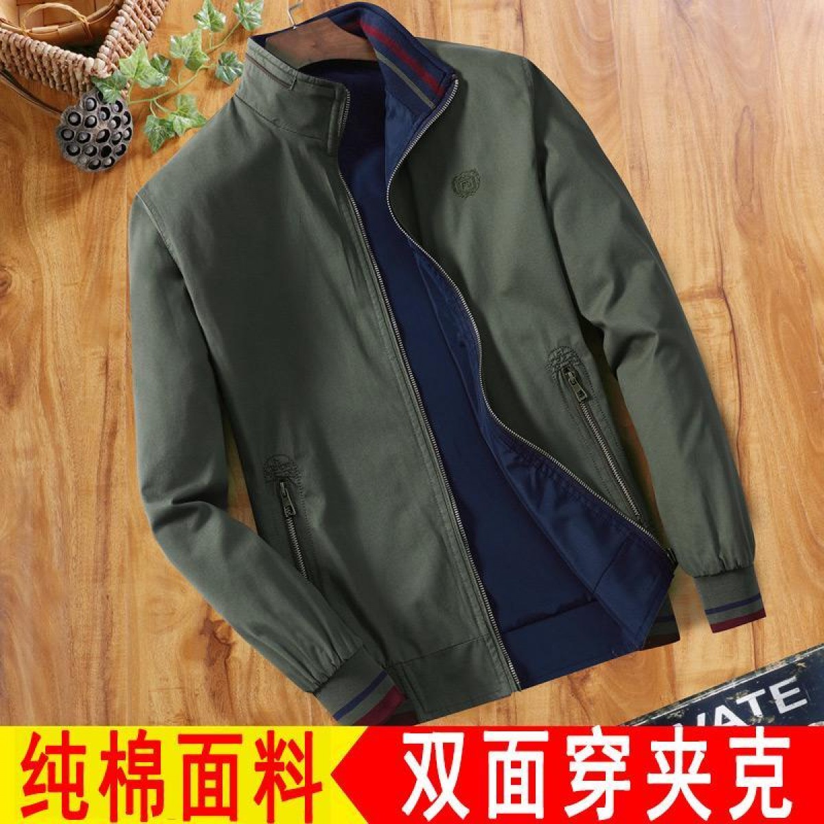 商品名稱:春秋季立領(lǐng)純棉夾克雙面穿中年男士夾克衫休閑爸爸裝薄款外套