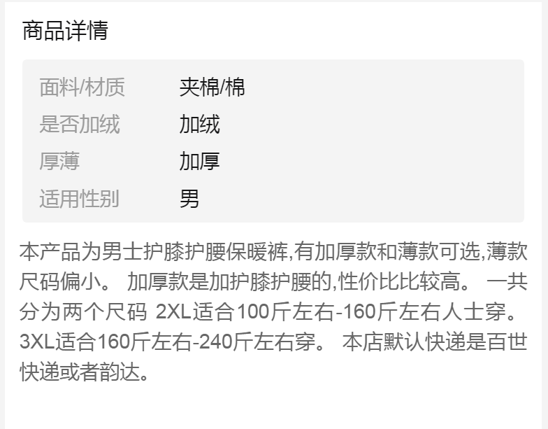商品名稱:冬季加肥加大男士保暖褲護(hù)膝護(hù)腰棉褲加絨加厚寬松高腰超彈打底褲