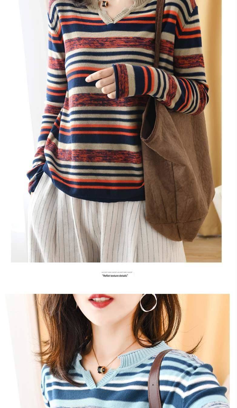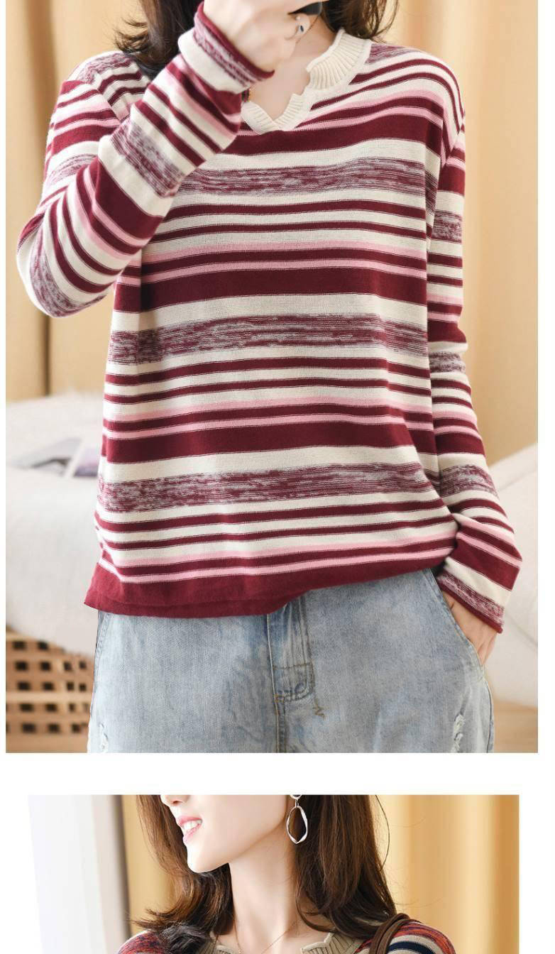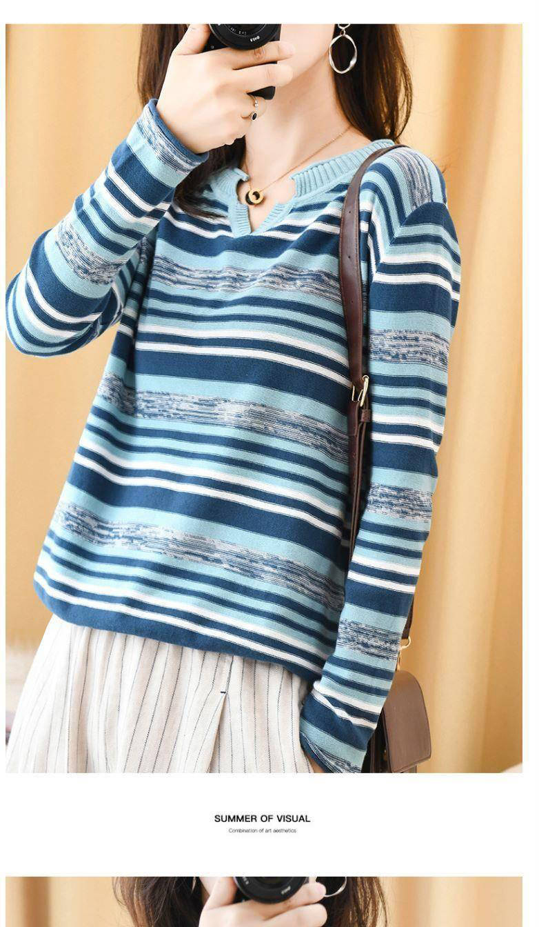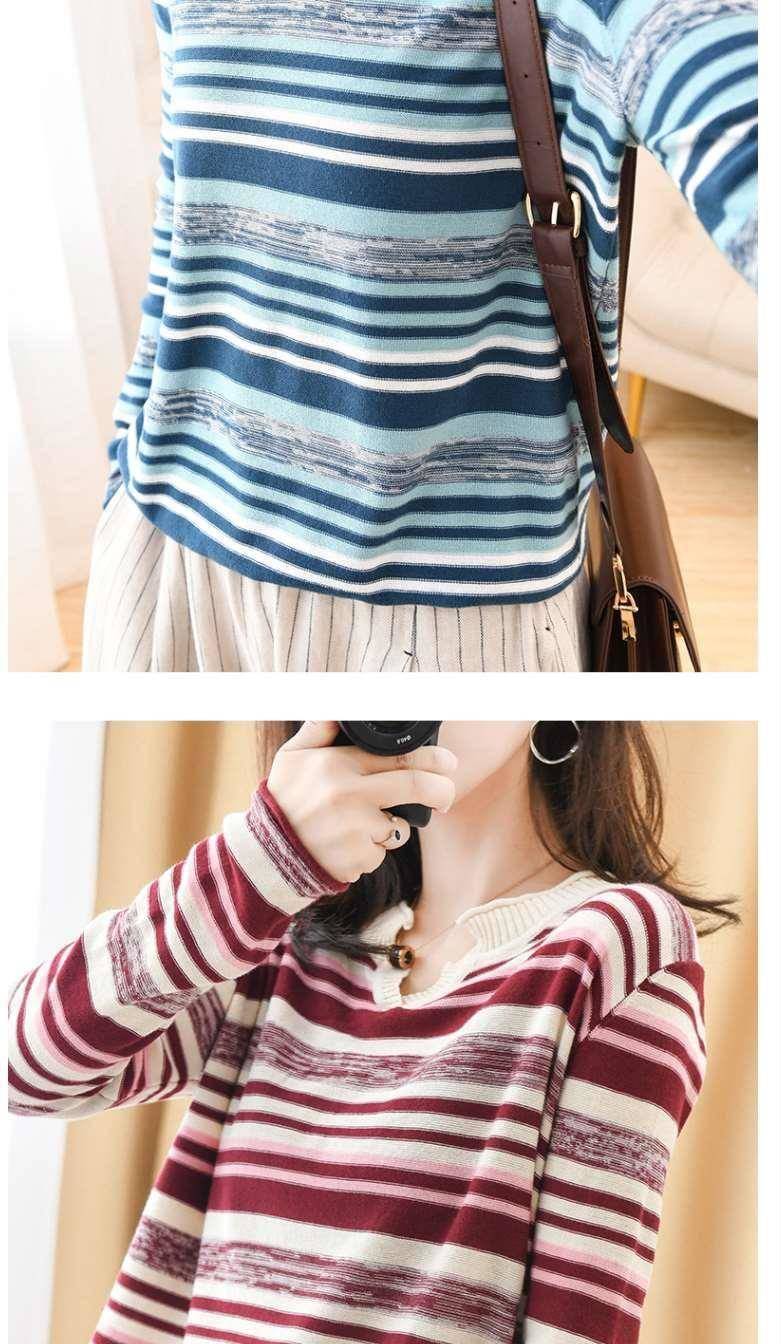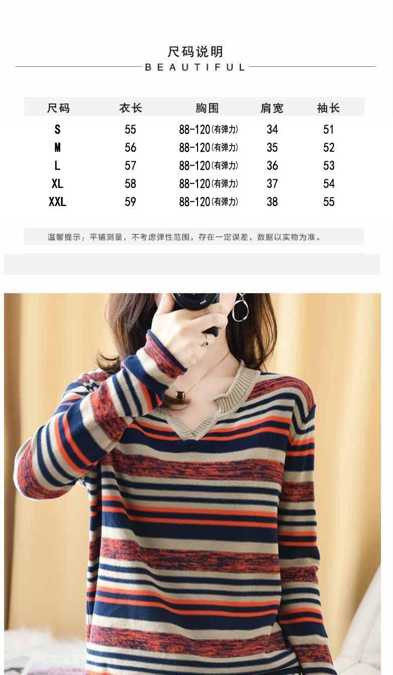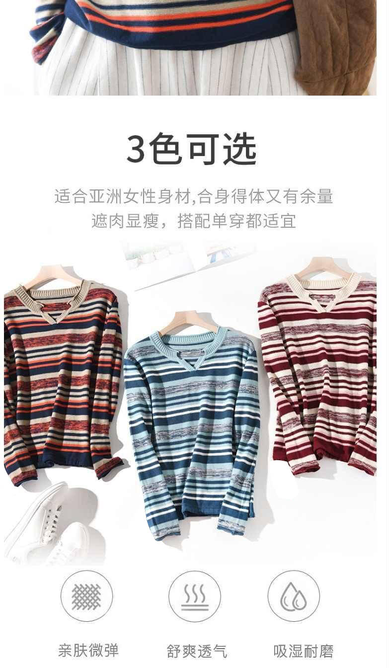 商品名稱:新款2019秋v領(lǐng)針織長(zhǎng)袖女裝寬松毛衣上衣條紋針織衫薄款打底衫