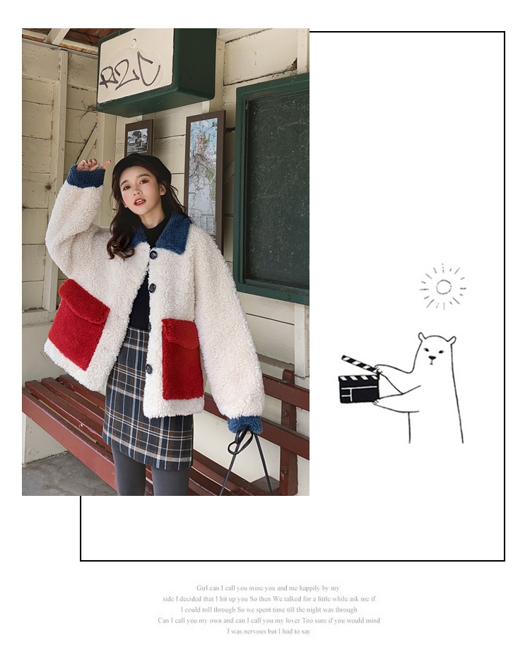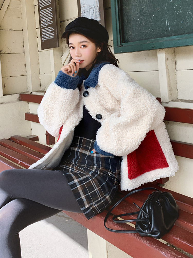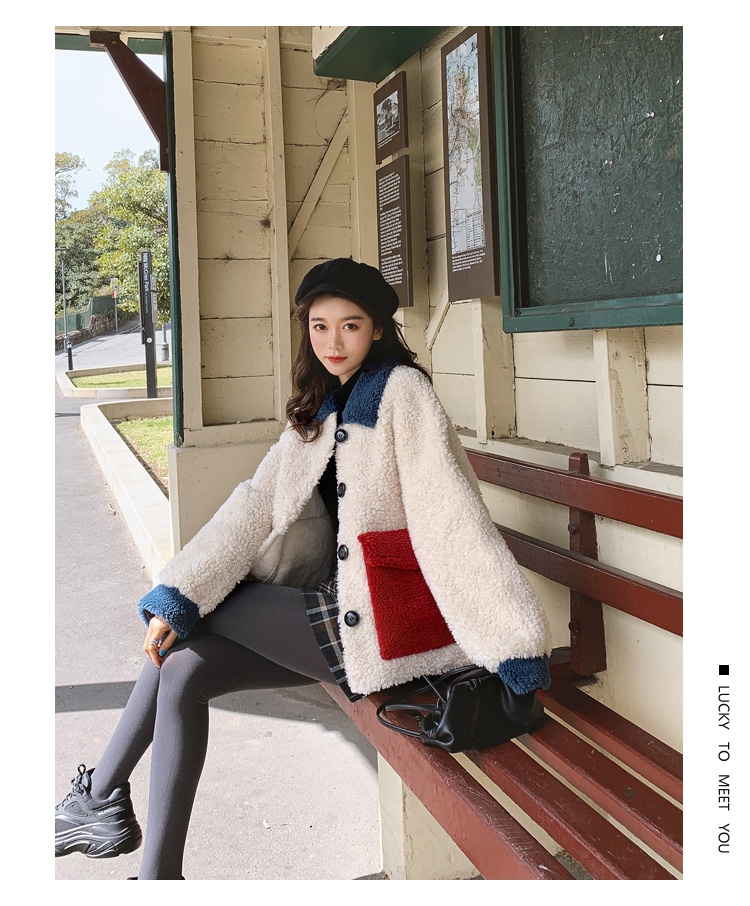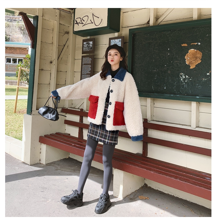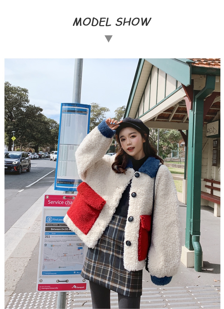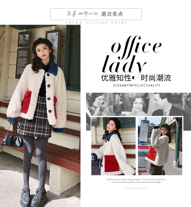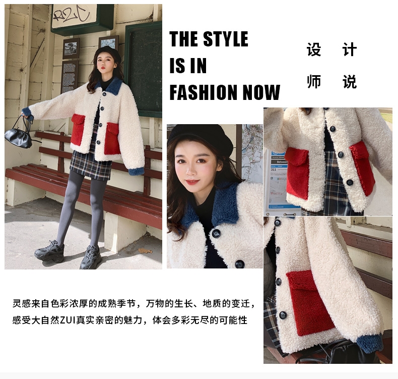 商品名稱:新款撞色拼接羊羔毛外套女港風(fēng)學(xué)生流行仿皮毛一體上衣潮