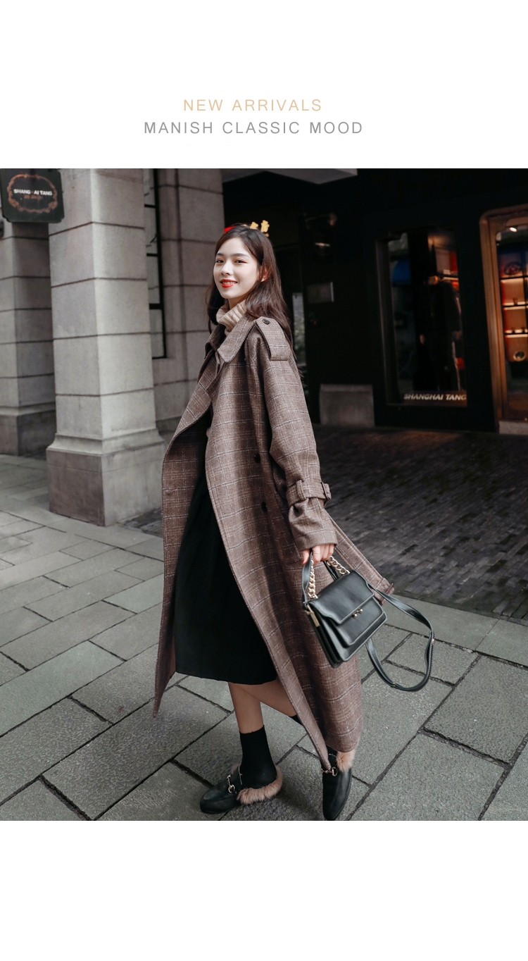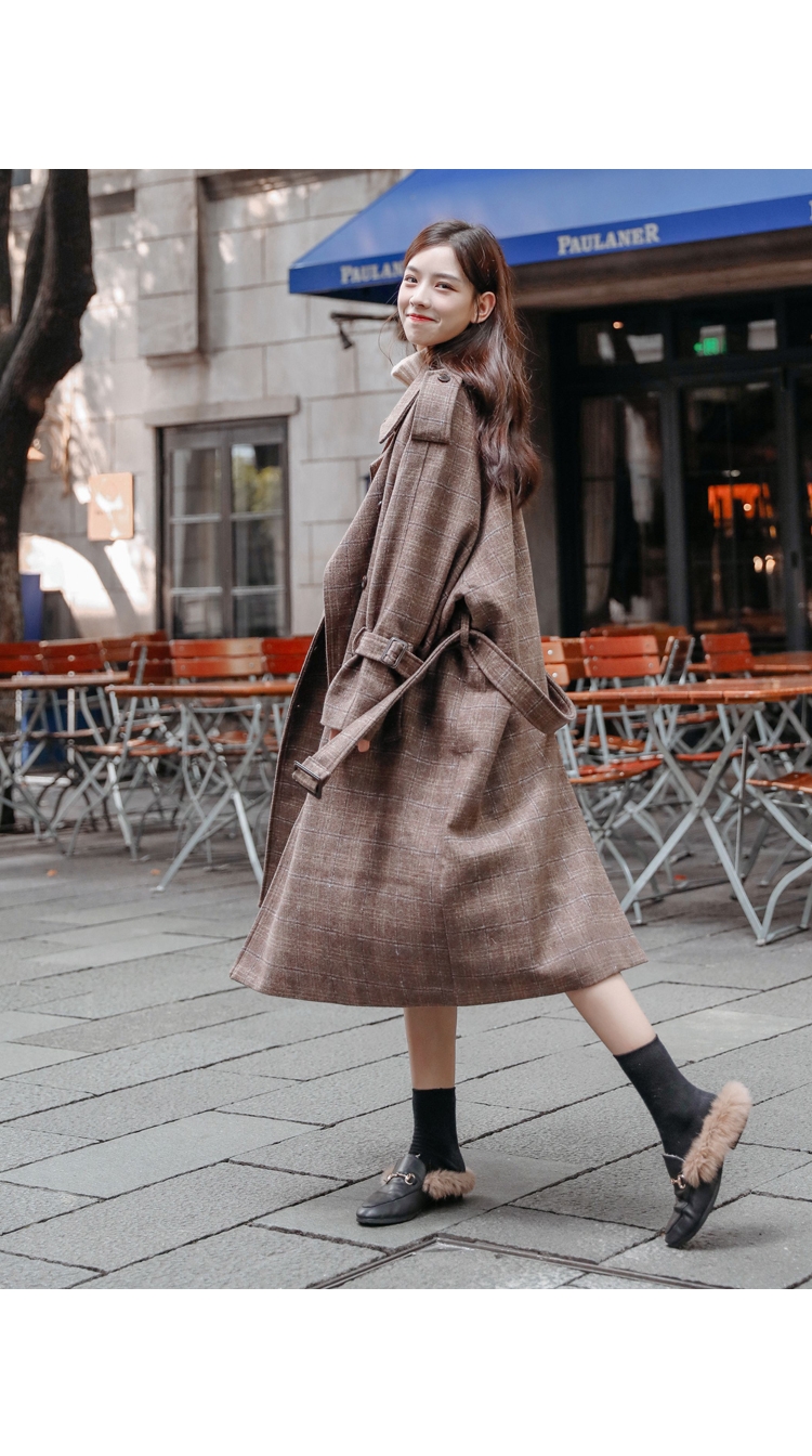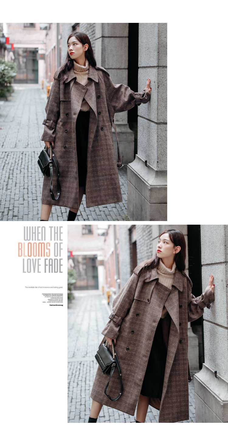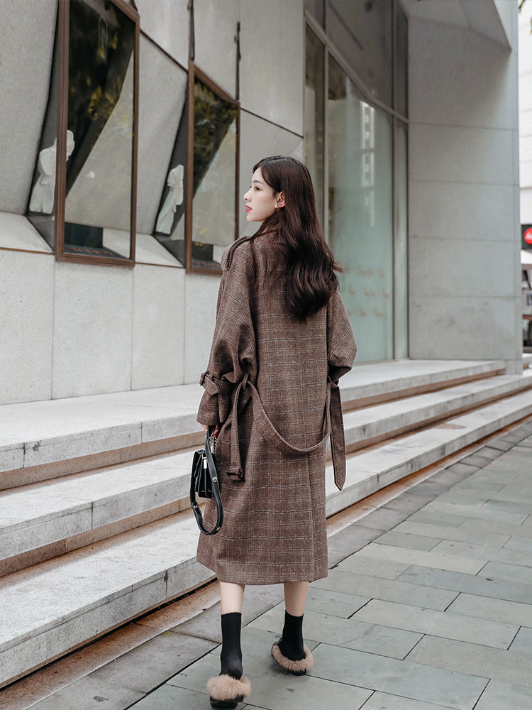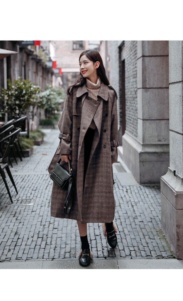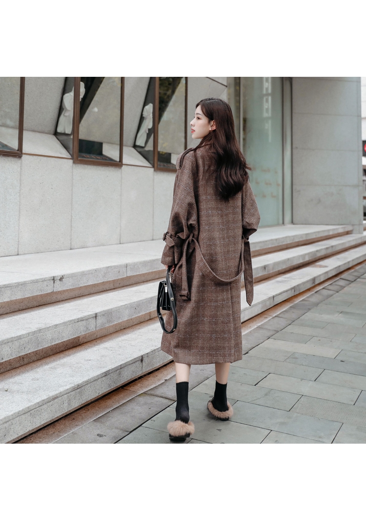 商品名稱:秋冬新款毛呢大衣女千鳥格寬松顯瘦中長款過膝格子呢子外套