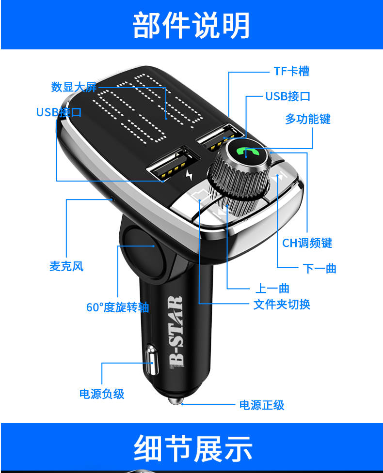 商品名稱:【大屏無雜音】車載MP3藍(lán)牙播放器多功能雙USB導(dǎo)航通話汽車用品