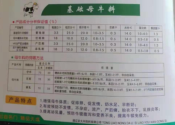 基礎(chǔ)母牛繁殖料:產(chǎn)品特點(diǎn):1.增強(qiáng)母牛體質(zhì),促進(jìn)排卵,促發(fā)情,奶水足,早斷奶。