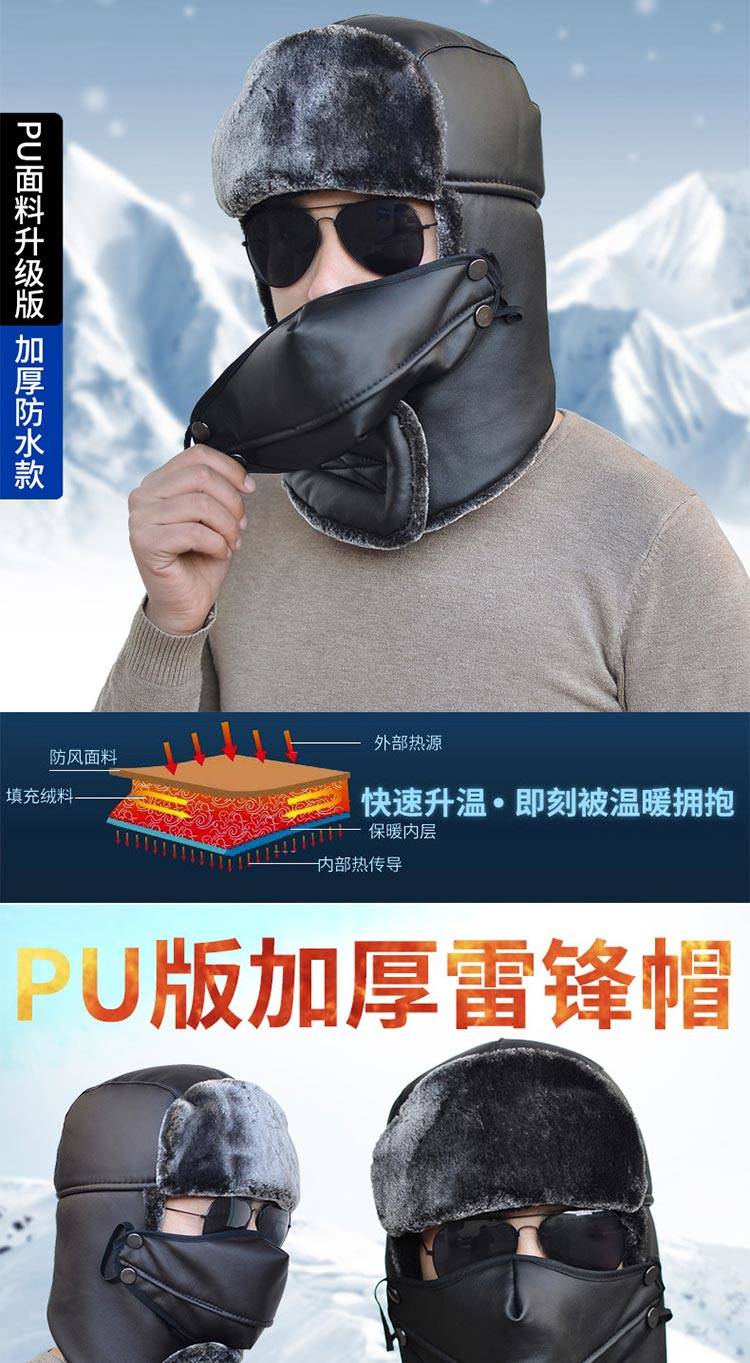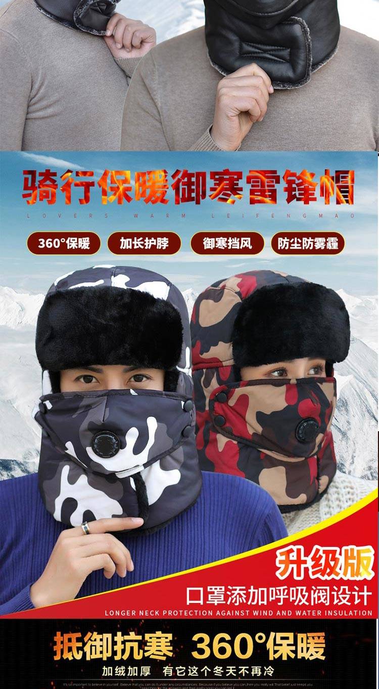 商品名稱(chēng):冬季帽子女韓版雷鋒帽男東北護(hù)耳棉帽冬天戶(hù)外騎車(chē)防風(fēng)保暖防寒帽