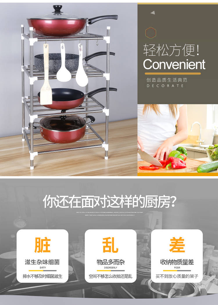 商品名稱:加高加厚不銹鋼臉盆架 廚房置物架 多層廚房鍋架收納架