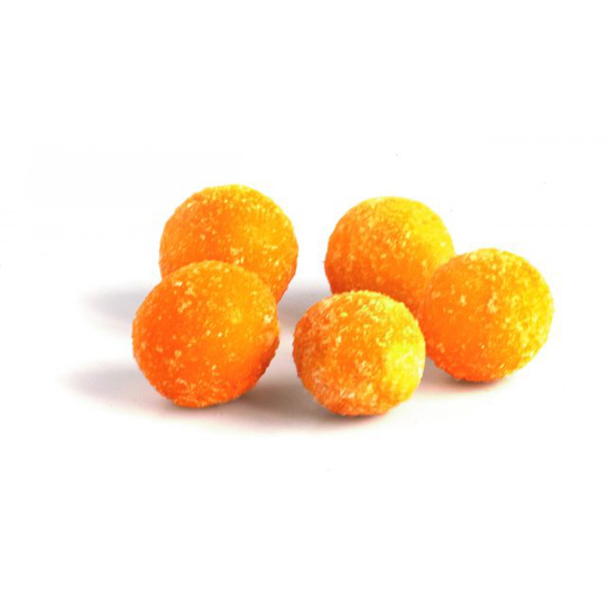 Форма изделий округлая, поверхность гладкая, блестящая. Корпус - кристаллы сахара-песка, накатка сахарная жёлтого цвета.
