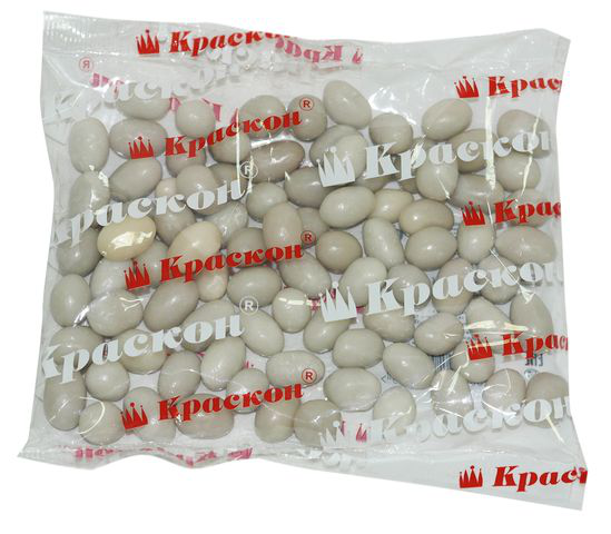 Форма изделий удлиненно-округлая, поверхность гладкая, блестящая. Корпус - ядро арахиса, накатка сахарная неокрашенная.
