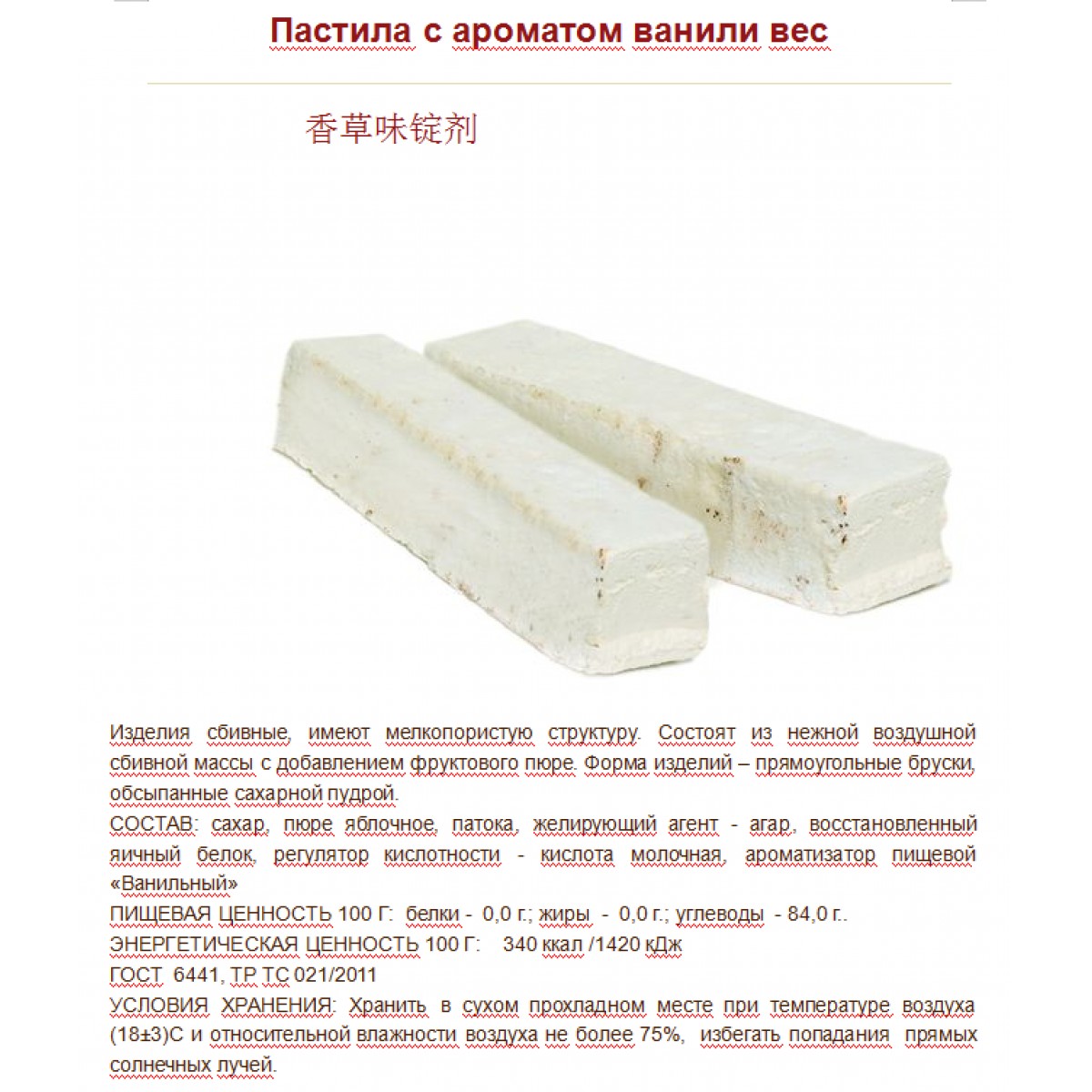 СОСТАВ: сахар, пюре яблочное, патока, желирующий агент - агар, восстановленный яичный белок, регулятор кислотности - кислота молочная, ароматизатор пищевой ?Ванильный?