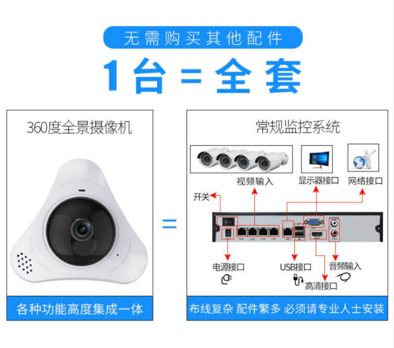 360度全景監(jiān)控?cái)z像頭高清手機(jī)遠(yuǎn)程家用監(jiān)控器無線wifi智能一體機(jī)