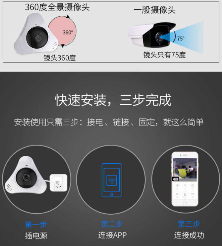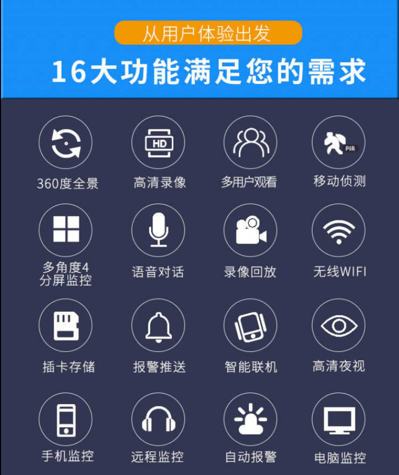商品名稱:360度全景監(jiān)控?cái)z像頭高清手機(jī)遠(yuǎn)程家用監(jiān)控器無線wifi智能一體機(jī)