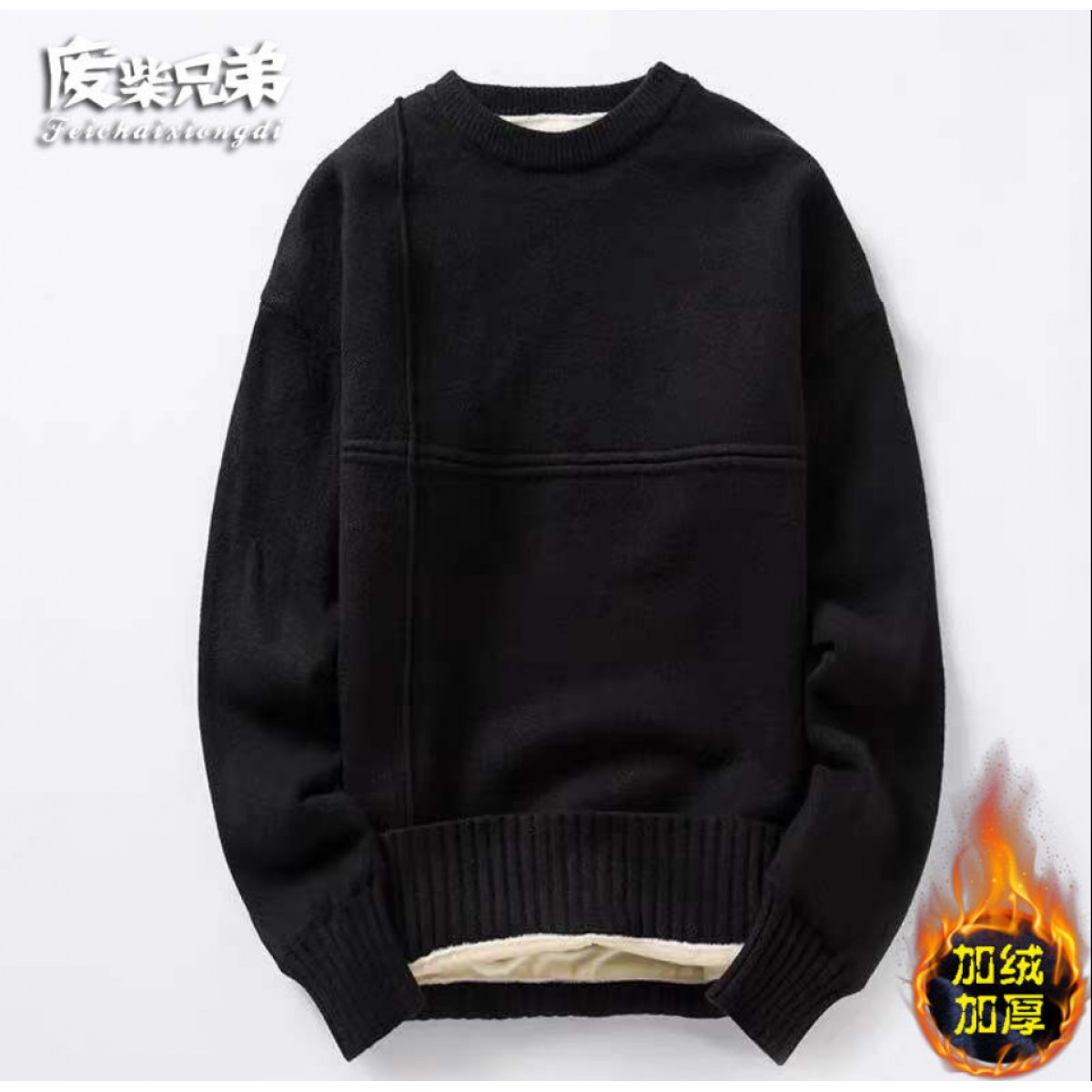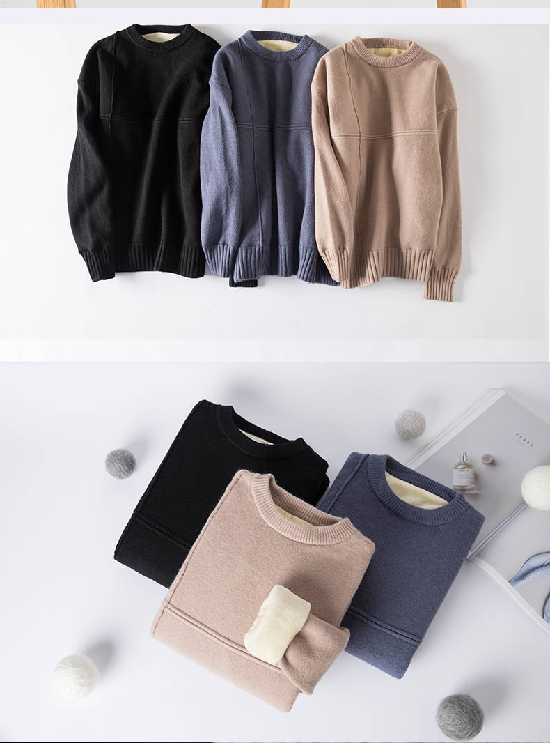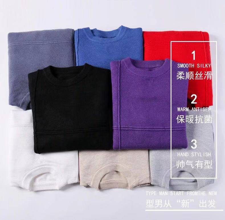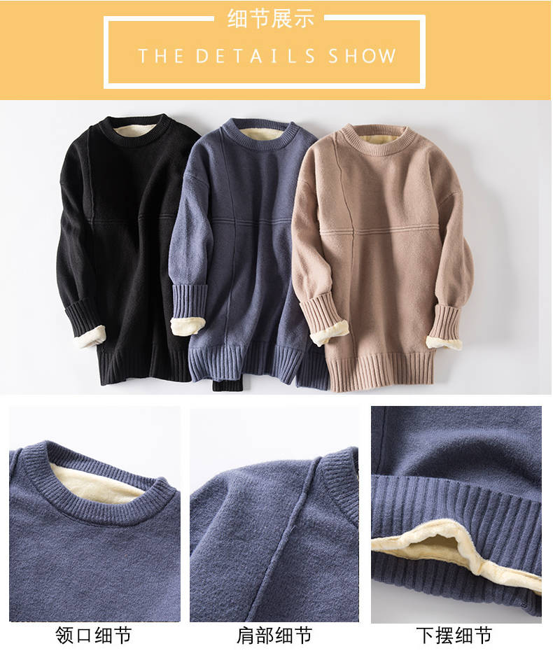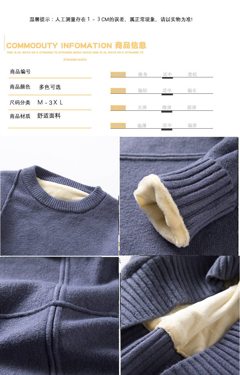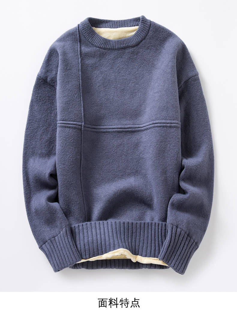 商品名稱:冬季新款男士加絨加厚圓領(lǐng)毛衣男青年學(xué)生針織衫衣服