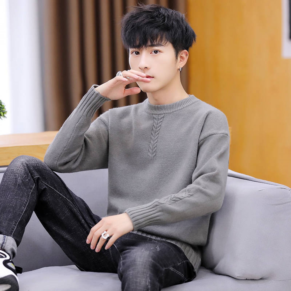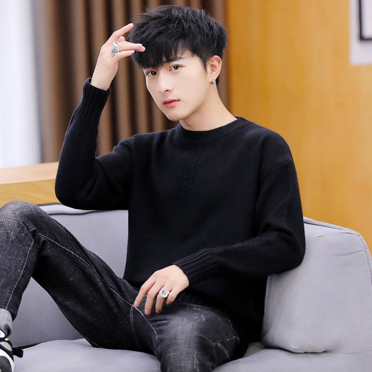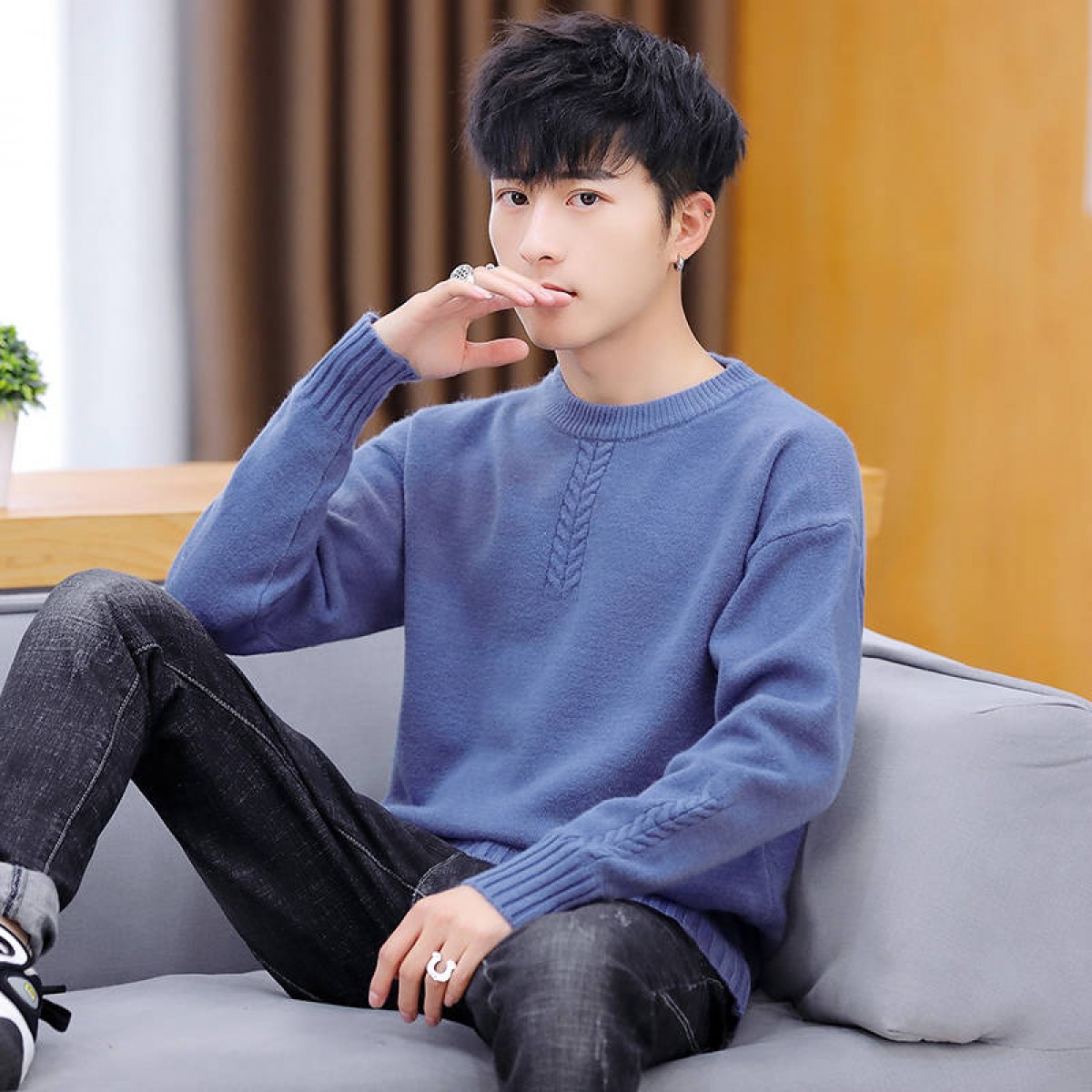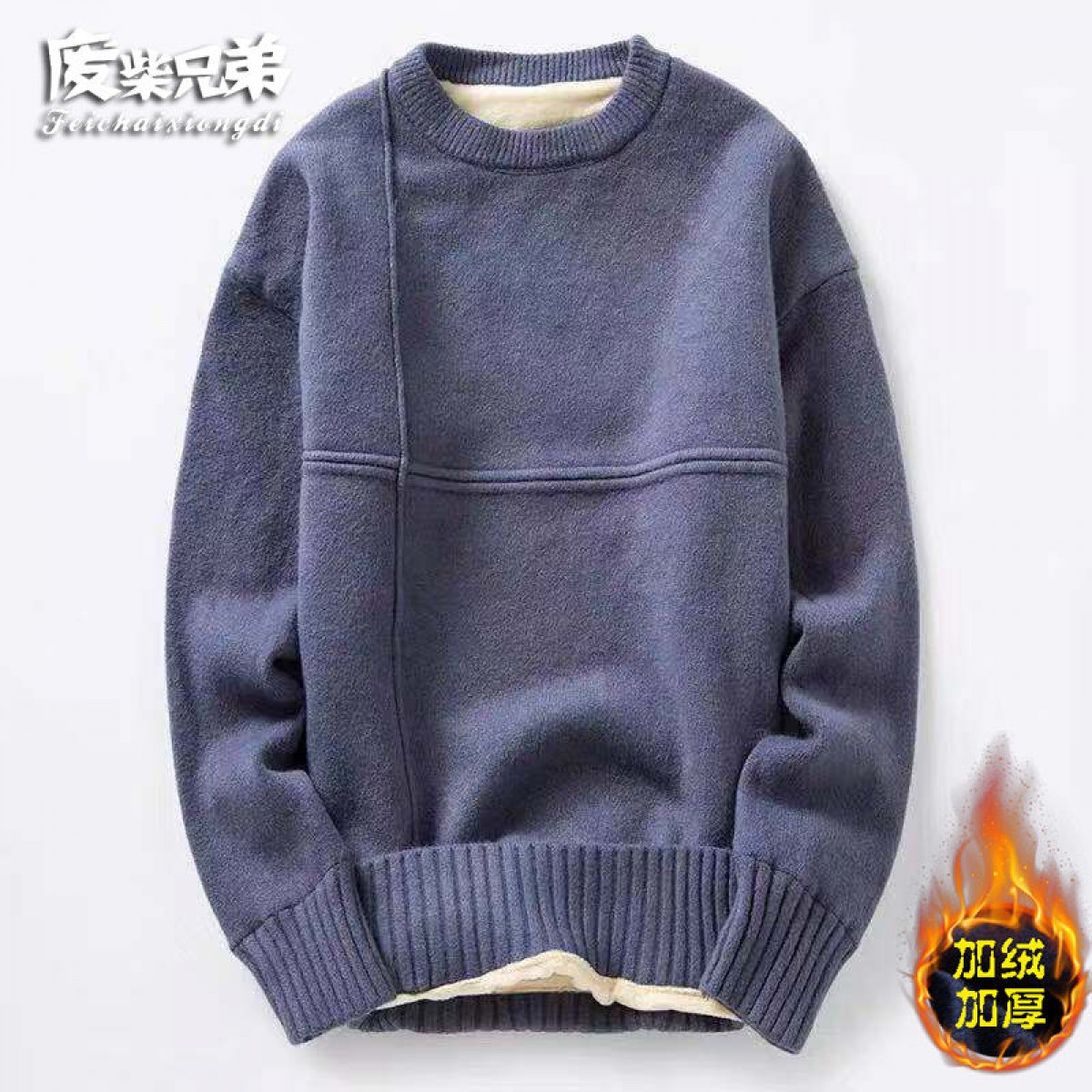 商品名稱:冬季新款男士加絨加厚圓領(lǐng)毛衣男青年學(xué)生針織衫衣服
