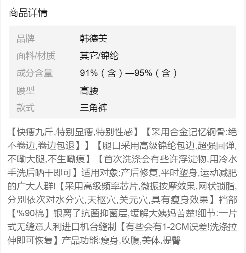 商品名稱:收腹內(nèi)褲高腰女燃脂瘦身束腰提臀瘦身收腹褲減肥內(nèi)褲