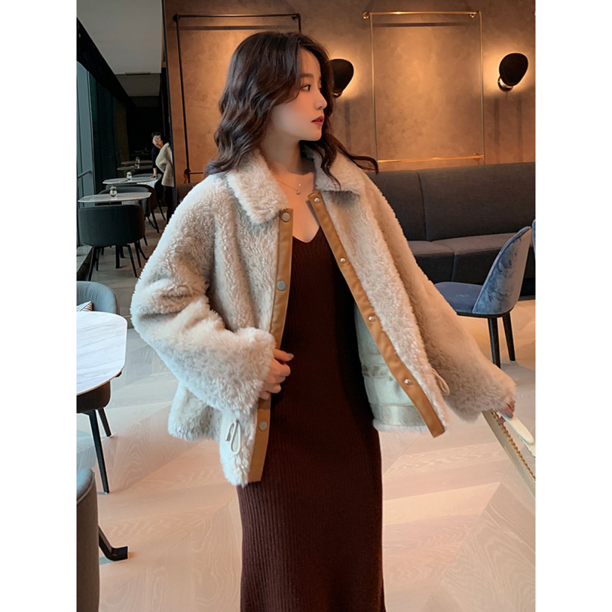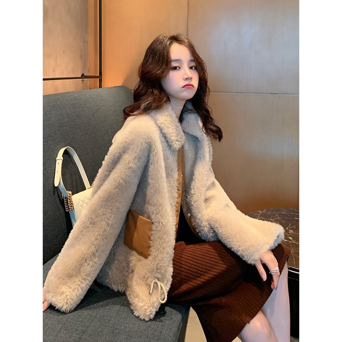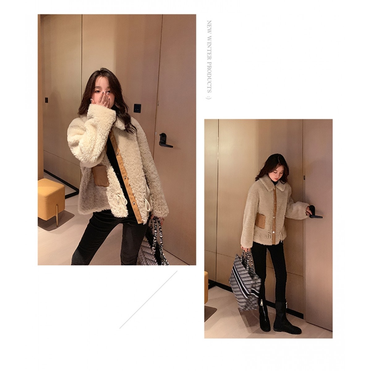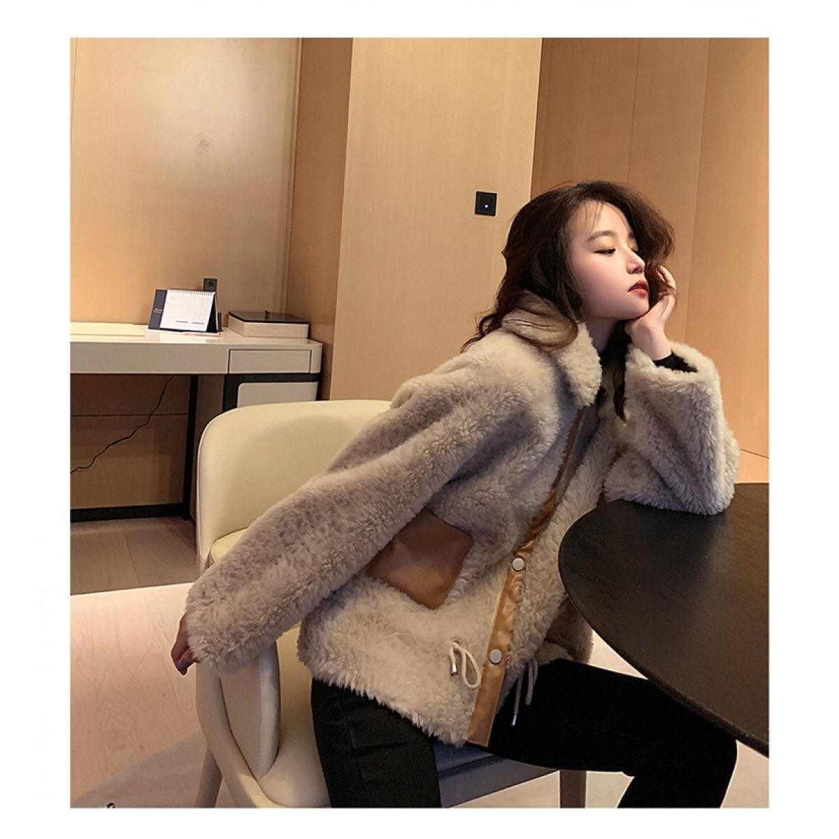 商品名稱:流行秋冬新款短款羊羔毛拼接外套女ins港味韓版寬松學(xué)生上衣